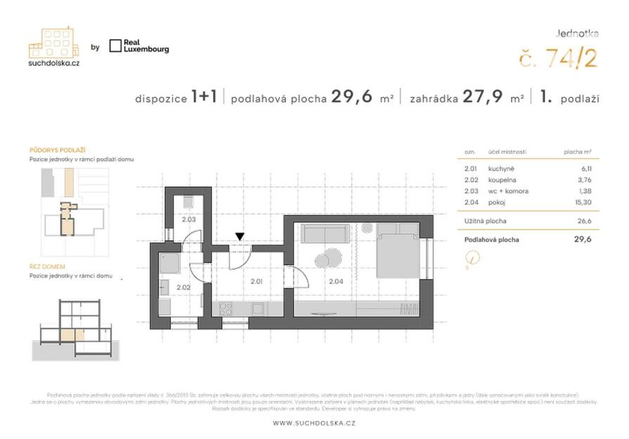 Součástí nabídky je také zahrádka o velikosti 27,9 m².