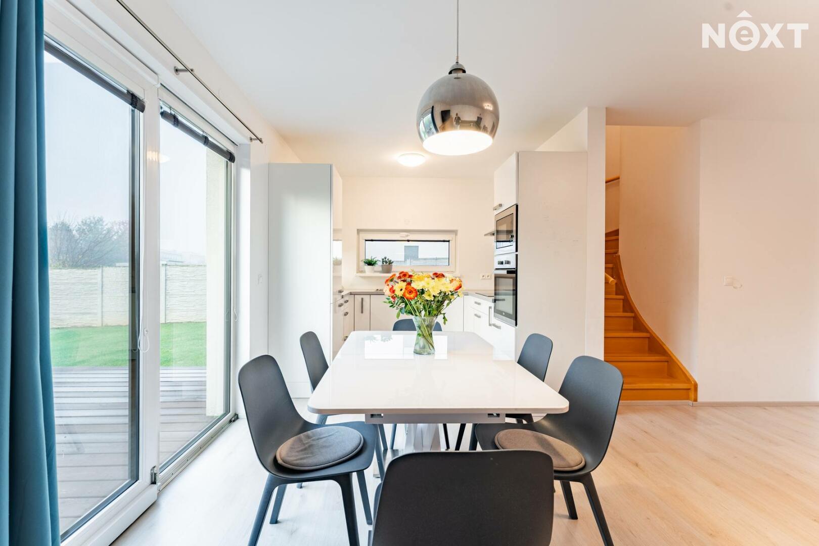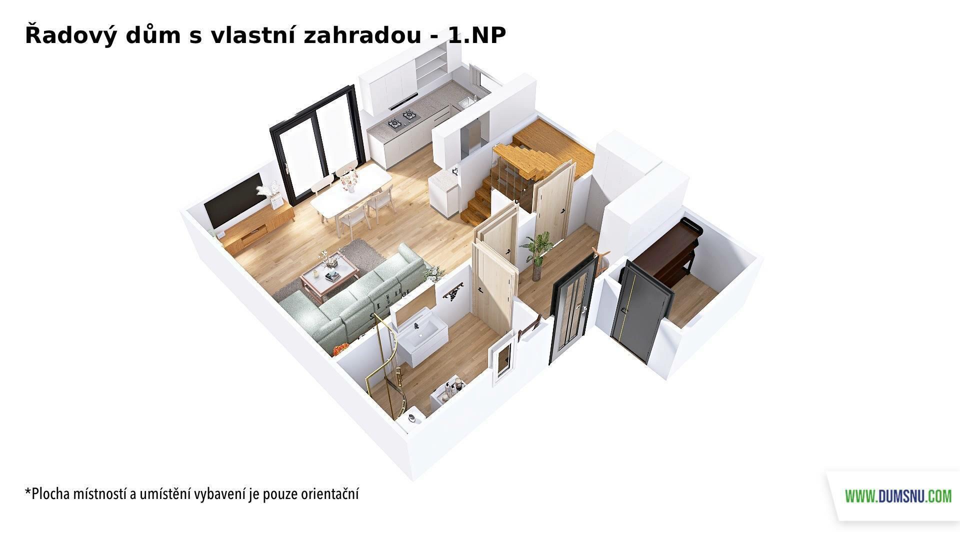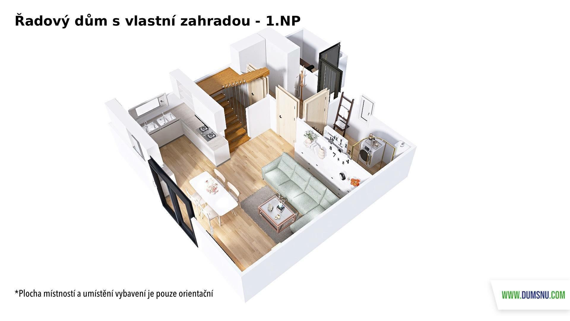 Dům o dispozici 4+kk a podlahové ploše 88,75 m² nabízí vše, co rodina potřebuje – chytré uspořádání prostoru, dostatek světla, úložné prostory i příjemné zázemí. Jedná se o krajní řadový dům, který poskytuje větší míru soukromí a vlastní oplocenou zahradu s výměrou 233 m2. Ta je ideálním místem pro relaxaci i rodinné aktivity – najdete zde terasu pro posezení u sklenky vína, prostor pro dětské hřiště nebo vyvýšené záhony.