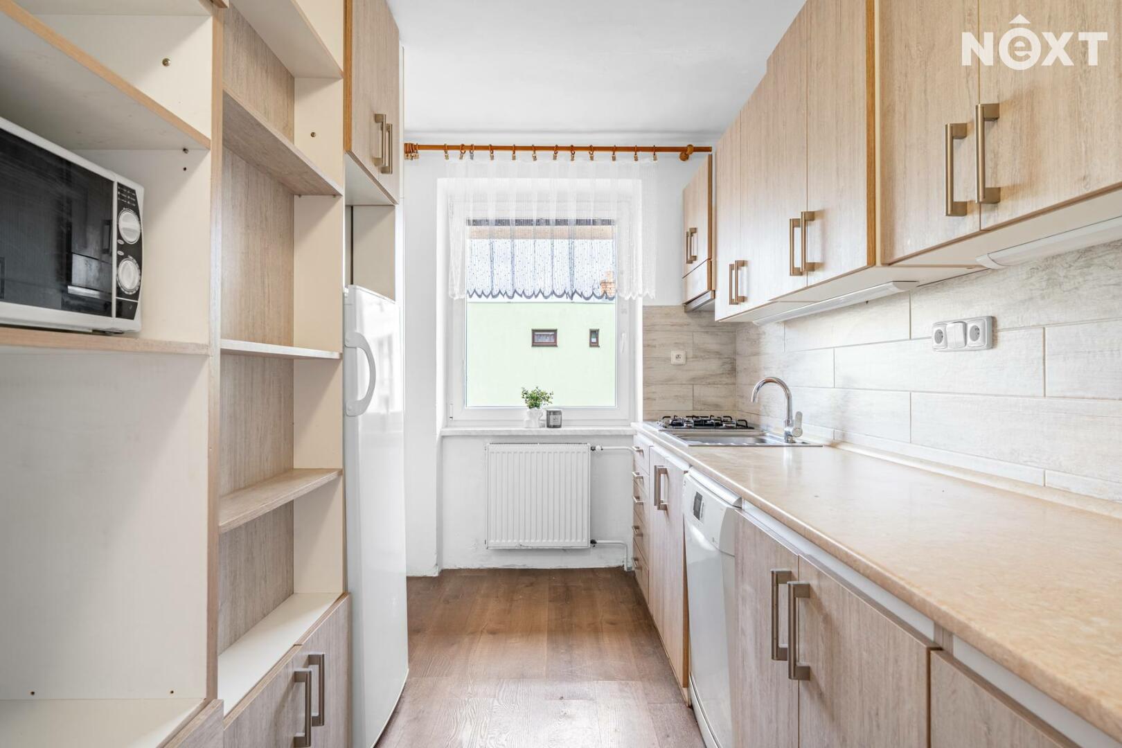 Kuchyně je vybavena všemi spotřebiči potřebnými pro pohodlné vaření – plynovým sporákem s troubou, mikrovlnnou troubou, lednicí, myčkou nádobí a dostatkem úložného prostoru. V obývací části se nachází jídelní stůl se židlemi a pohodlná sedací souprava.