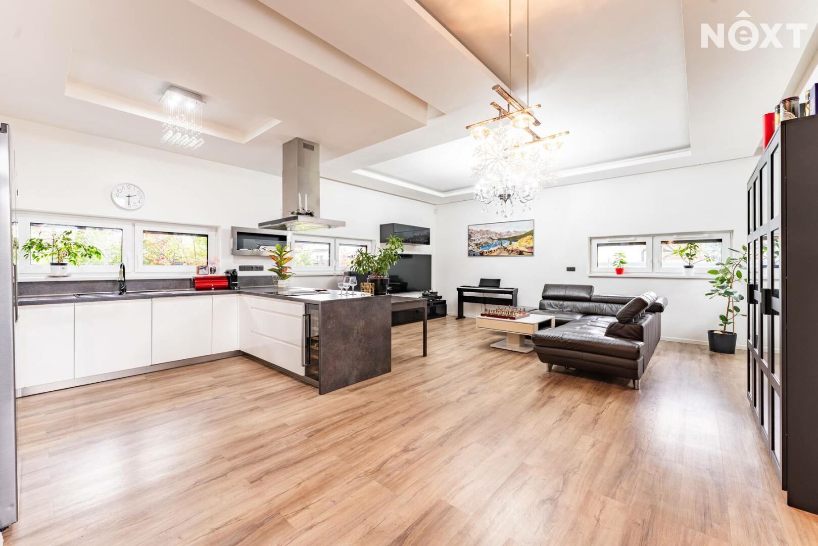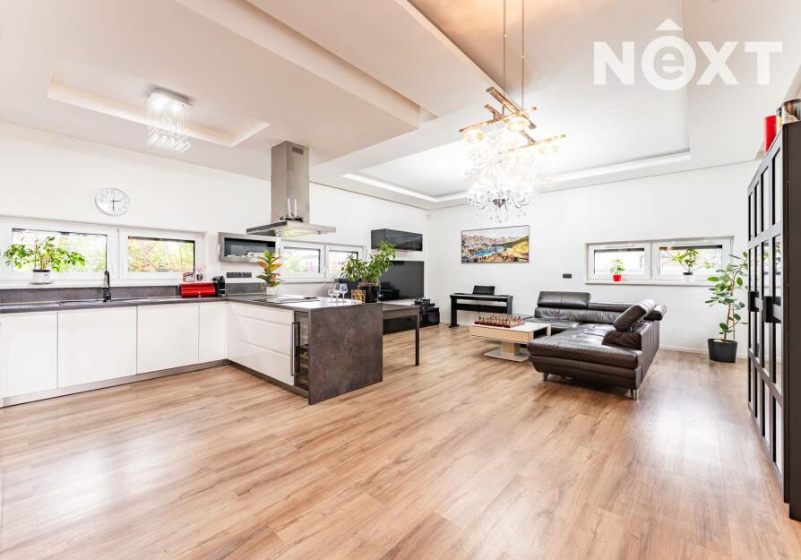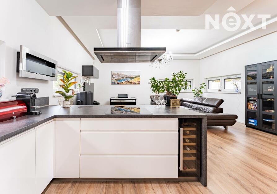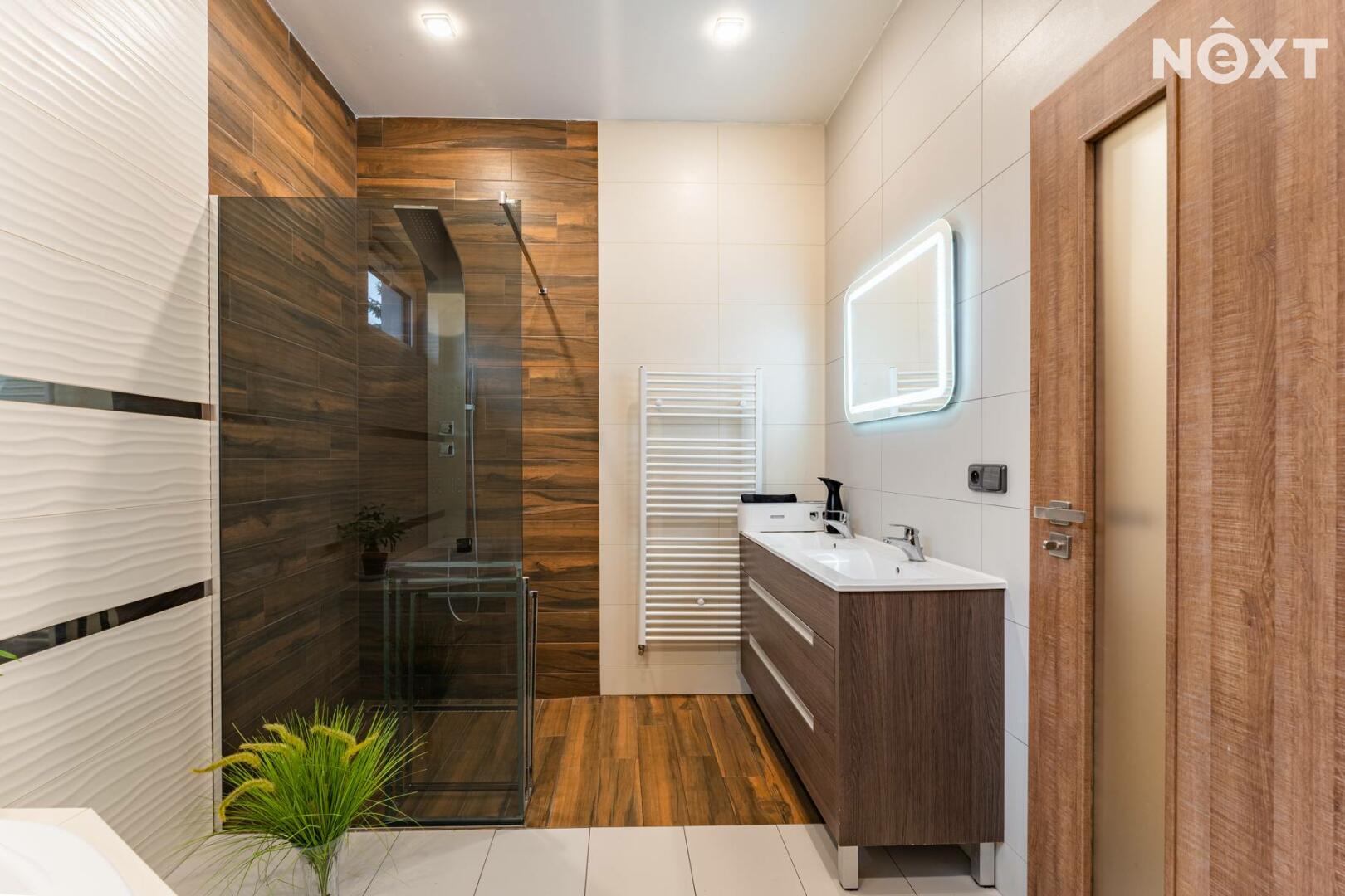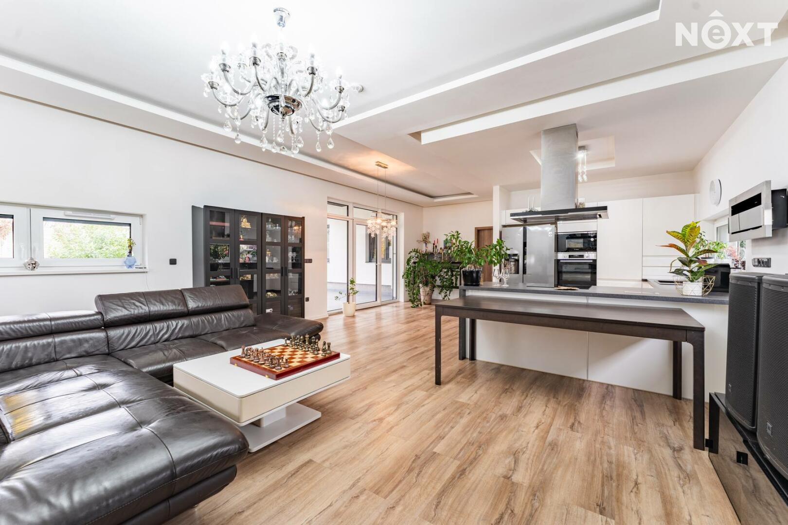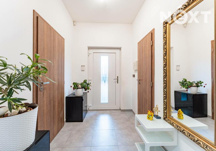 Dům nabízí dispoziční řešení 4+kk s prostorným obývacím pokojem, který díky netradičně vysokým stropům (3,2 m) působí mimořádně vzdušně a velkoryse. Na něj navazuje moderní kuchyně s jídelní částí, odkud je přímý vstup na terasu o velikosti 26 m² a zahradu s jihozápadní orientací. Kuchyňská linka je vyrobena na míru, vybavena vestavěnými spotřebiči a navržena tak, aby poskytovala maximum pracovního i úložného prostoru. Součástí domu je místnost pro šatnu, samostatná toaleta pro hosty, technická místnost s pračkou, sušičkou a bojlerem. Koupelna s vanou i sprchovým koutem a další toaletou, tři neprůchozí pokoje a garáž o ploše 25 m² s automatickými vraty.