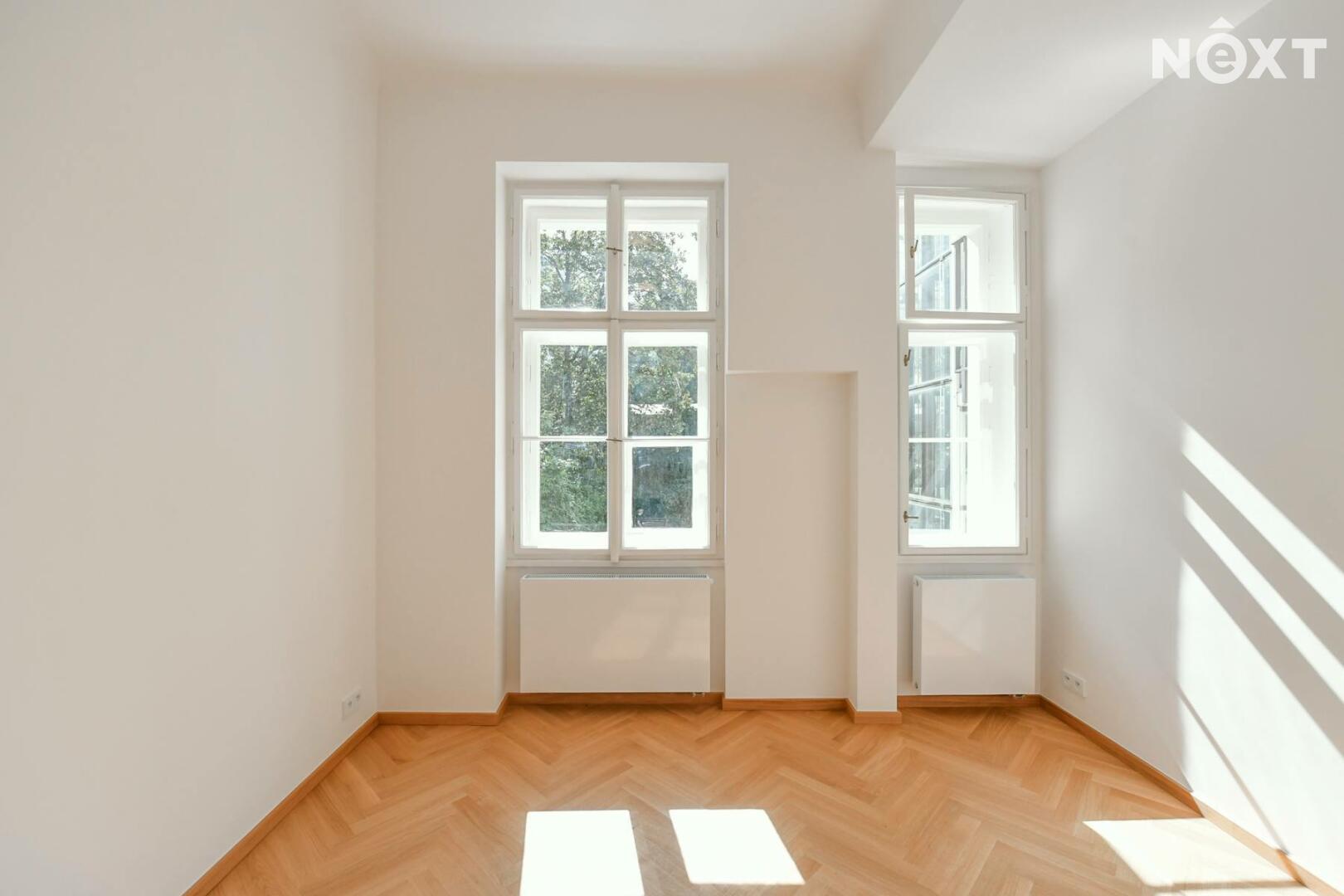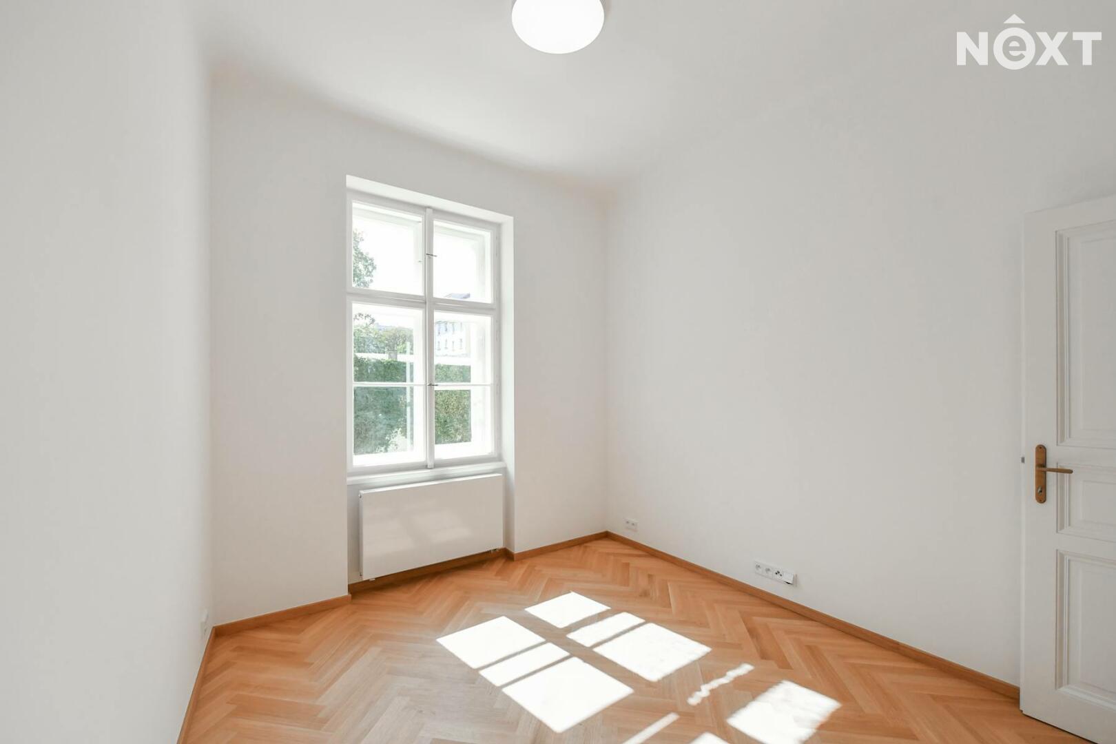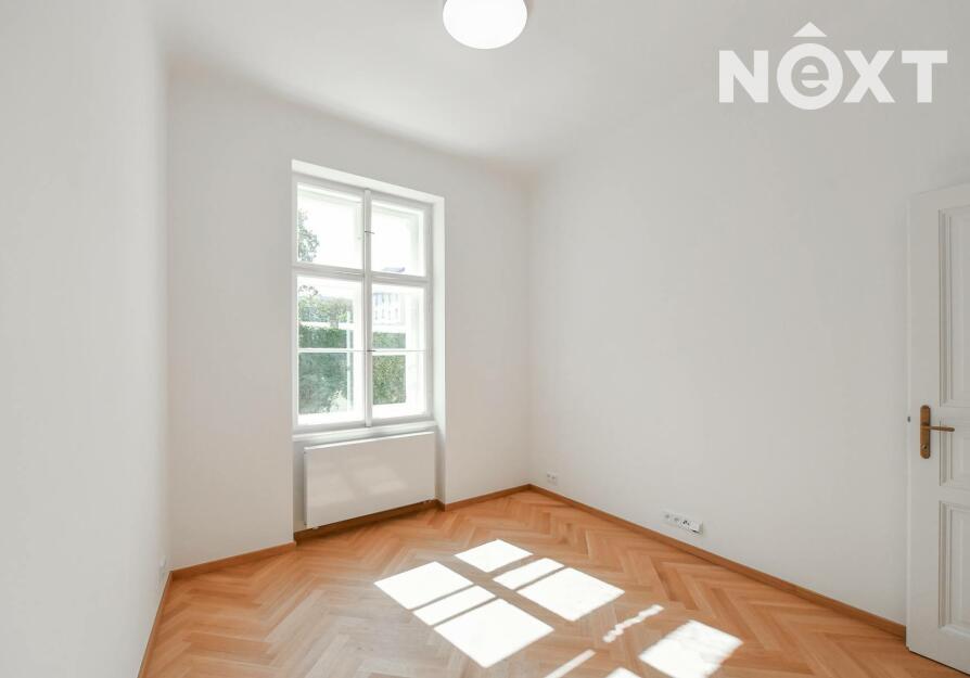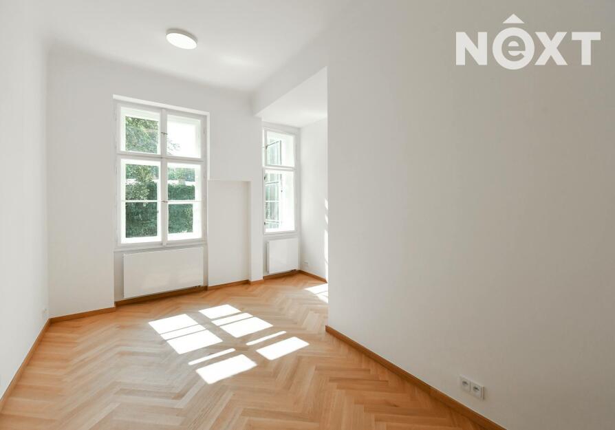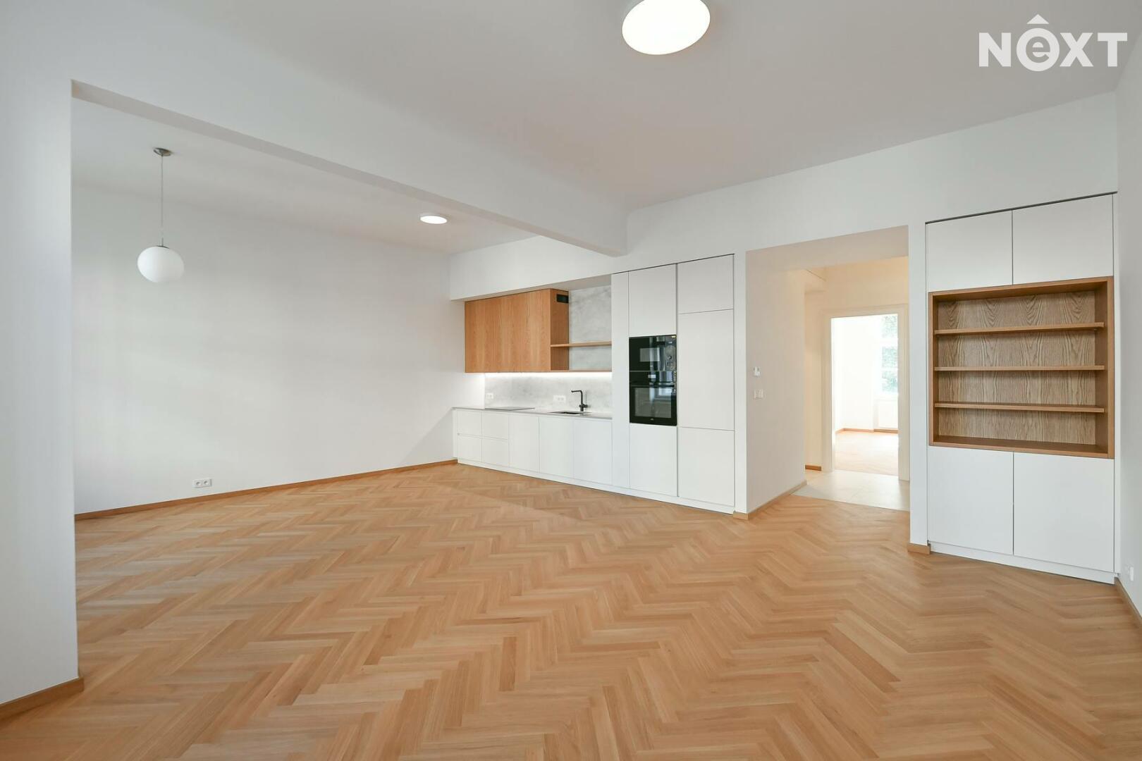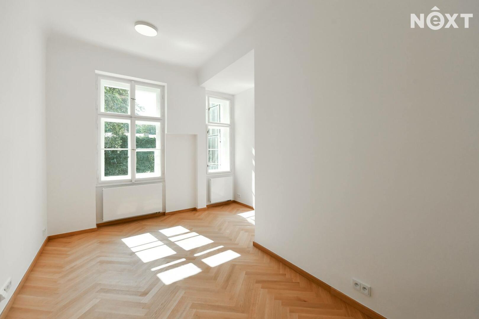 Nabízí velkorysý a reprezentativní obývací pokoj situovaný na východ (do ulice Kamenická) a dále dvě ložnice směřující na západ (do klidové části zeleného vnitrobloku). K dispozici je dále prostorná vstupní hala s šatnou, koupelna se sprchou, umyvadlem + WC a samostatné WC pro hosty. Vysoké stropy umocňují pocit vzdušnosti a světlosti všech prostor. Velkou výhodou je parkovací místo s maskovaným vjezdem do garáže a také prostorný, zelený dvůr se vzrostlými stromy a možností posezení, grilování či hraní dětí.