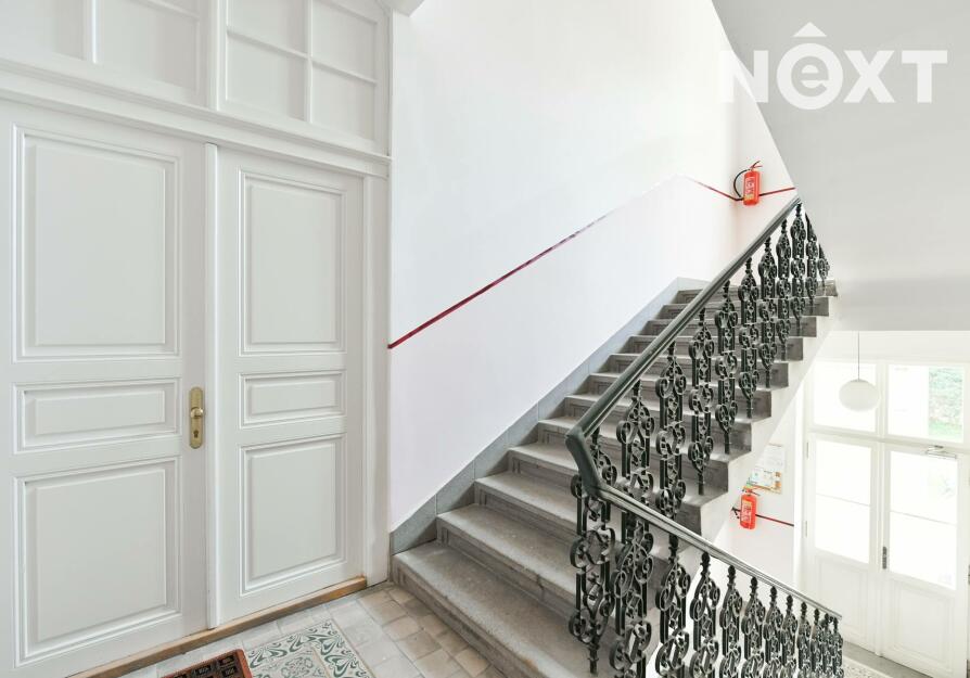 Byt se nachází ve druhém nadzemním podlaží klasicistního, letenského domu.