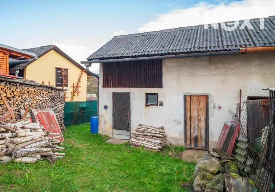 Na pozemku se nachází vytápěná garáž, kůlna s půdou a dřevník, ideální pro skladování dřeva i nářadí. K domu náleží dvě zahrady o výměře 319 m² a 209 m², které poskytují dostatek prostoru pro relaxaci, pěstování nebo rodinné posezení. Nechybí ani předzahrádka o rozloze 27 m², která dodává domu příjemný venkovský ráz.