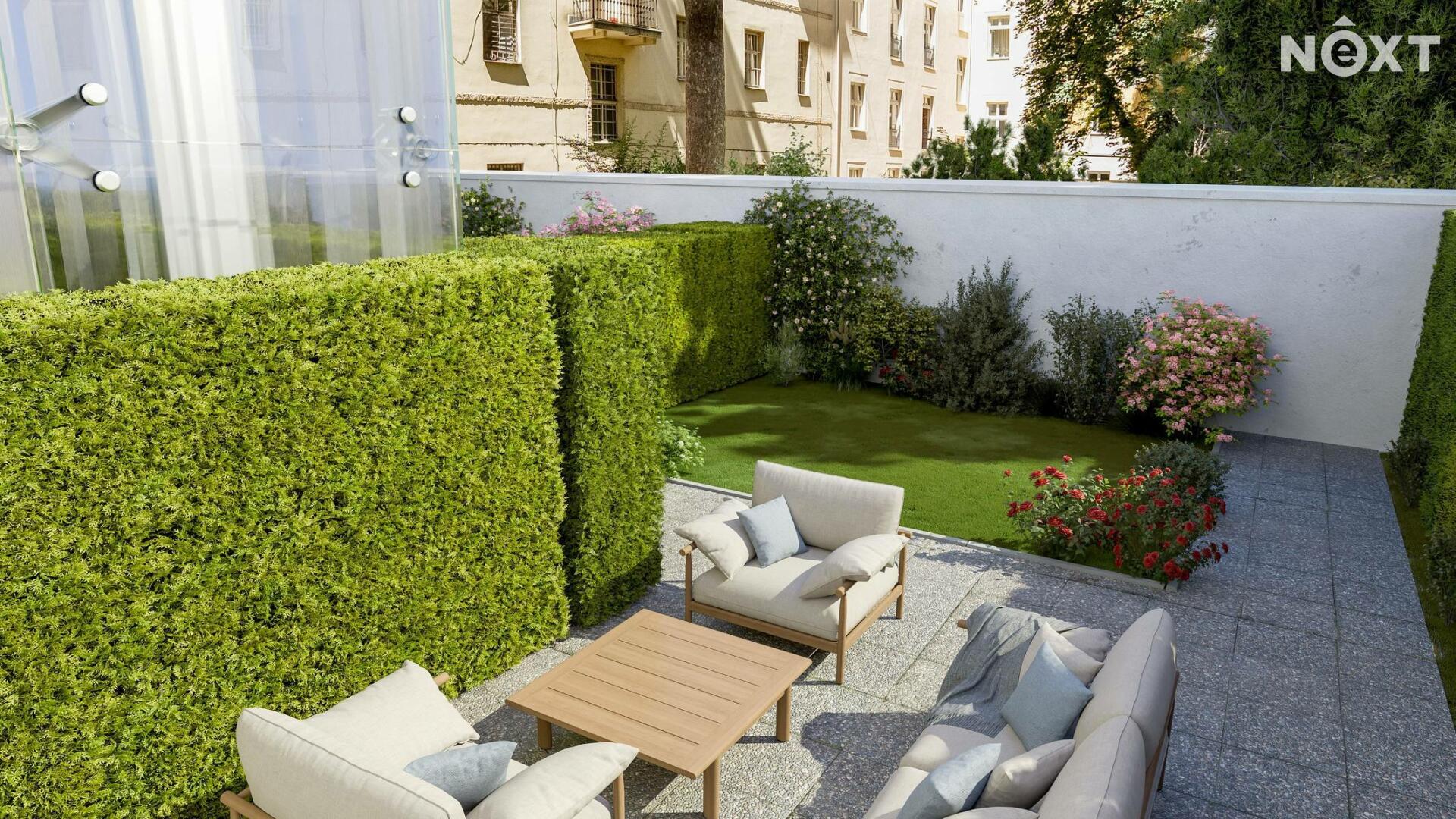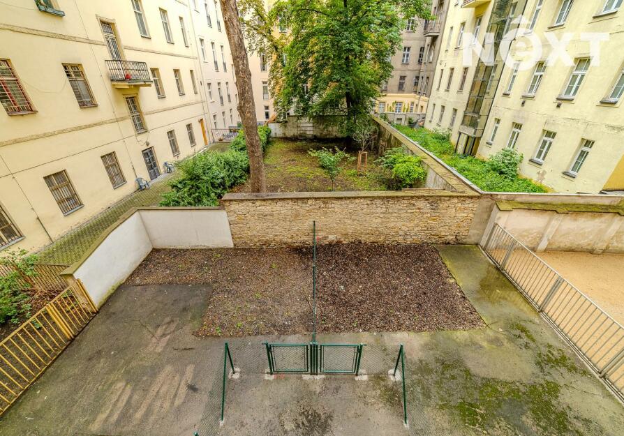 Obě jednotky se nachází na jednom podlaží s vchody naproti sobě, předzahrádky (2 x 80 m2) lze spojit v jeden celek. Nemovitost se nachází na jedinečném místě, Palackého náměstí v centru Prahy. Byty jsou ve 2. podzemním podlaží (okna do klidného vnitrobloku) dobře udržovaného historického domu.