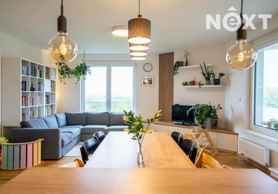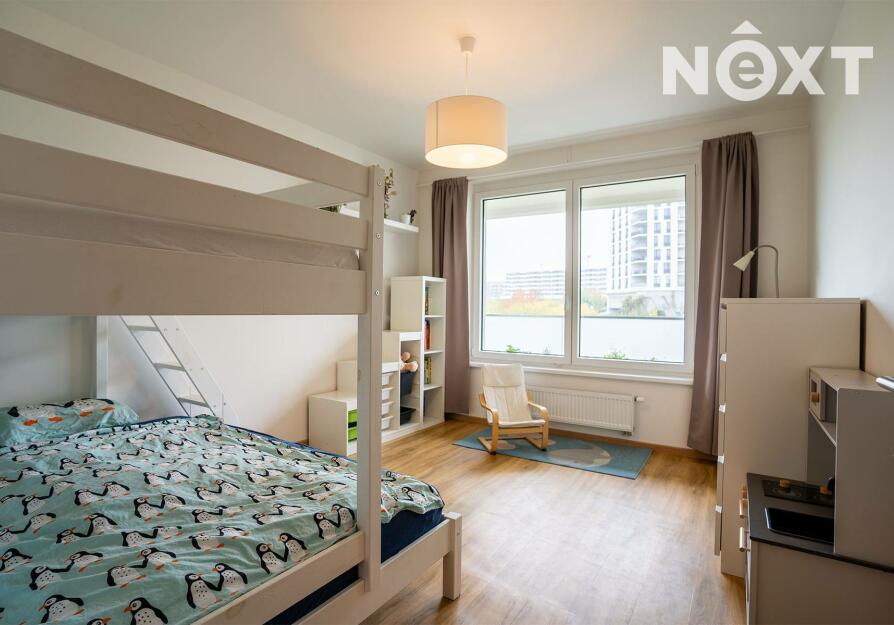 Díky orientaci na sever a západ je byt ideálně prosvětlený po celý den, přičemž v letních měsících zůstávají ložnice příjemně chladné. Balkon poskytuje příjemný výhled do klidného vnitrobloku a na západní stranu směrem k poli a kostelíku Krteň.