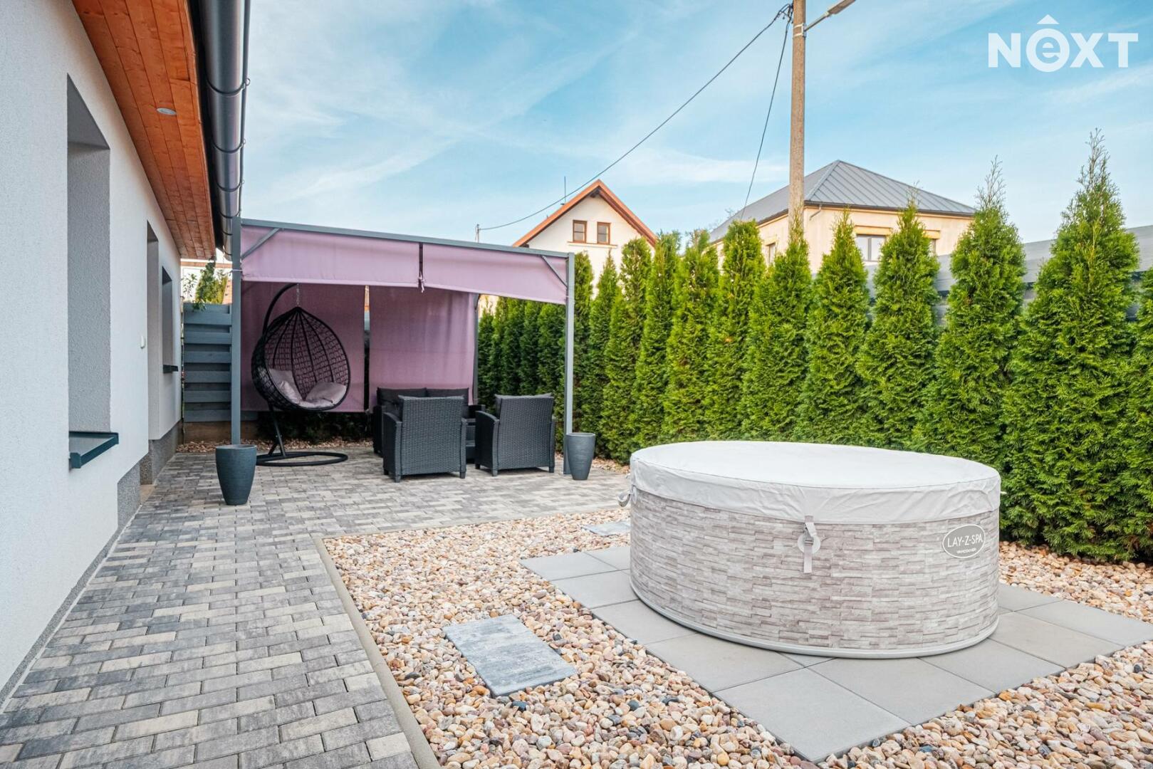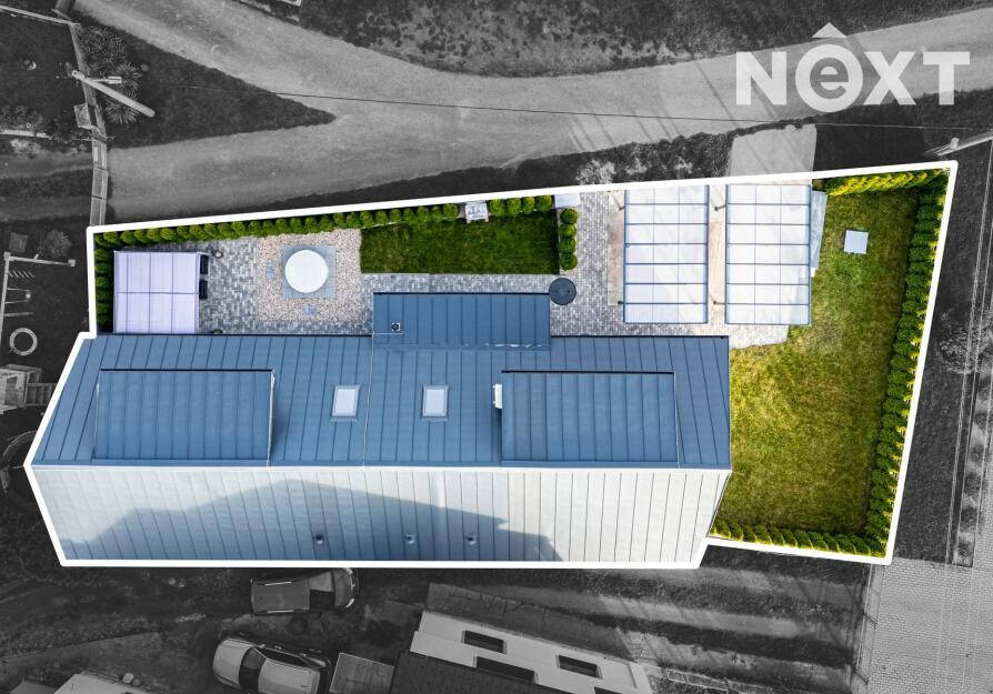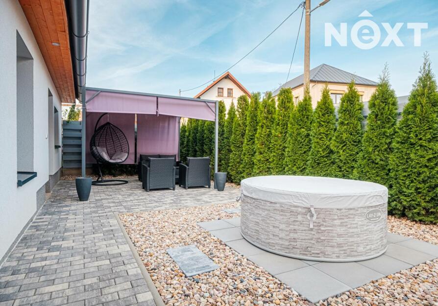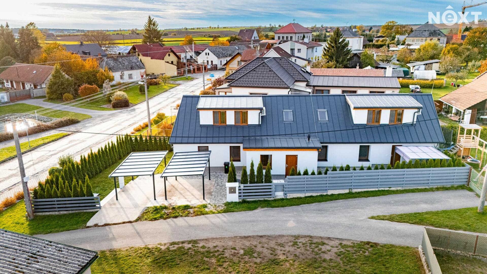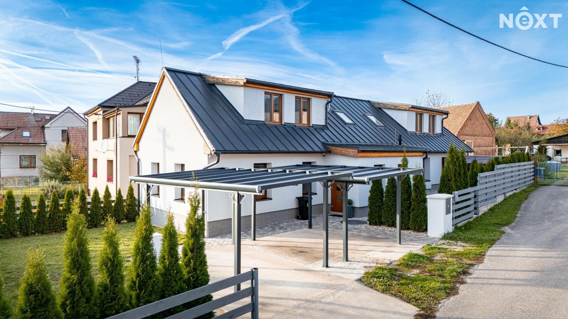 U domu zastřešené stání pro dvě auta. Pergola pro příjemné posezení venku. Pozemek kompletně oplocen.
