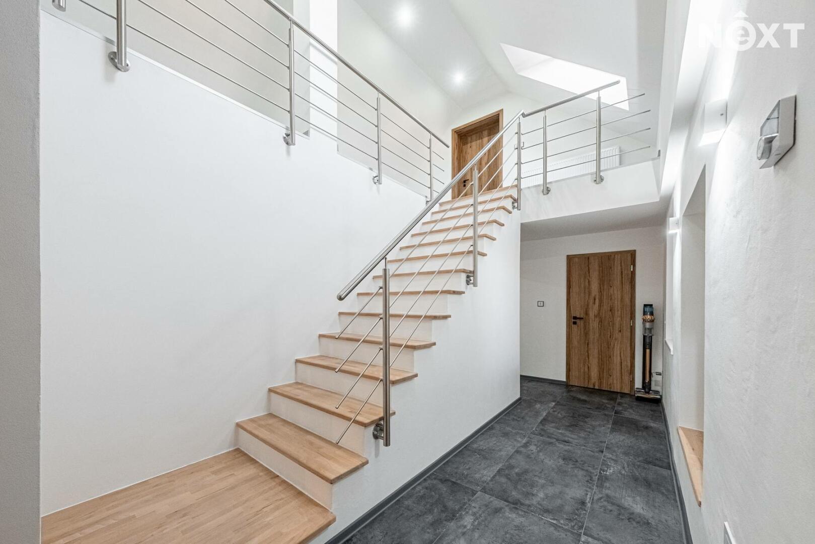 Dům je stavěn ze zdiva šíře 60cm se zateplením obvodových stěn 7,5 cm polystyren a zateplením krovů 25 cm vatou. Přízemí je po kompletní rekonstrukci, horní patro je nově vystavěné, nové krovy, střecha titanzinek, Plastová okna s izolačními trojskly. V oknech žaluzie se sítěmi proti hmyzu. Podlahové krytiny: přízemí dlažba, horní patro plovoucí podlahy. Topení řešeno plynovým kondenzačním kotlem v kombinaci s podlahovým topením v přízemí a v radiátory v patře. Termostat s Wi-Fi připojením a ovládáním vytápění na dálku. Ohřev TUV el. bojlerem. V patře osazeny klimatizace. Dům je napojen na vlastní studnu, odpady řešeny vlastní ČOV.