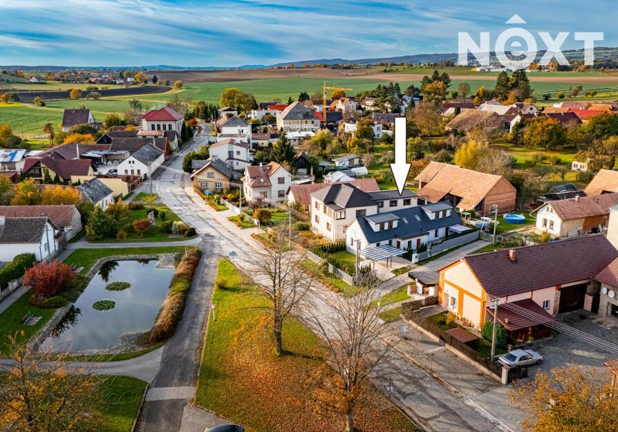 Dům se nachází v klidné obci - občanská vybavenost, školka, samoobsluha, koupaliště, zastávka autobusu přímo u domu