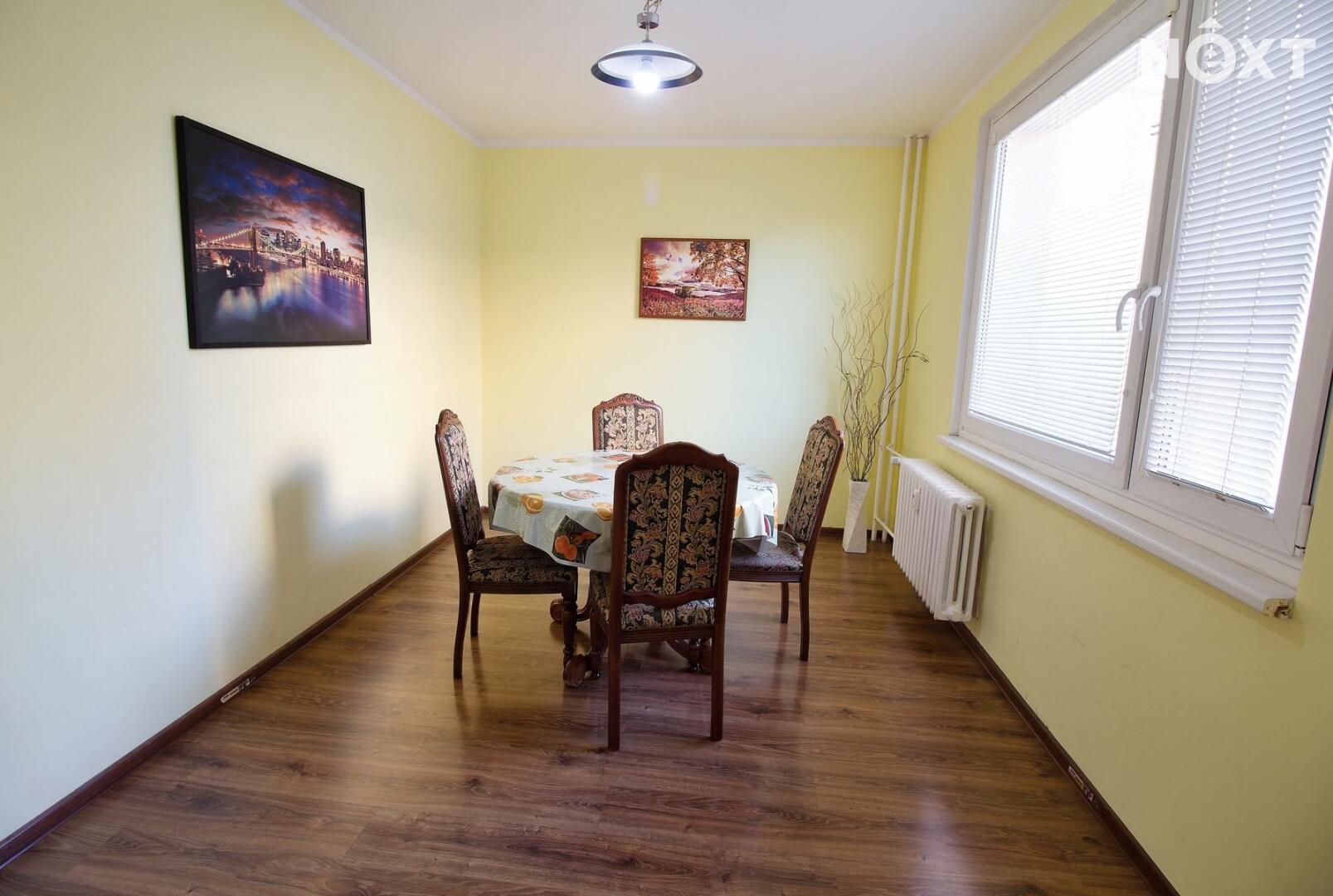 Byt nabízí čtyři prostorné pokoje s možností flexibilního uspořádání dle vašich potřeb. Díky dostatku přirozeného světla působí interiér vzdušně a příjemně. Součástí vybavení je kuchyňská linka se spotřebiči a vestavěné skříně, které poskytují dostatek úložného prostoru.
