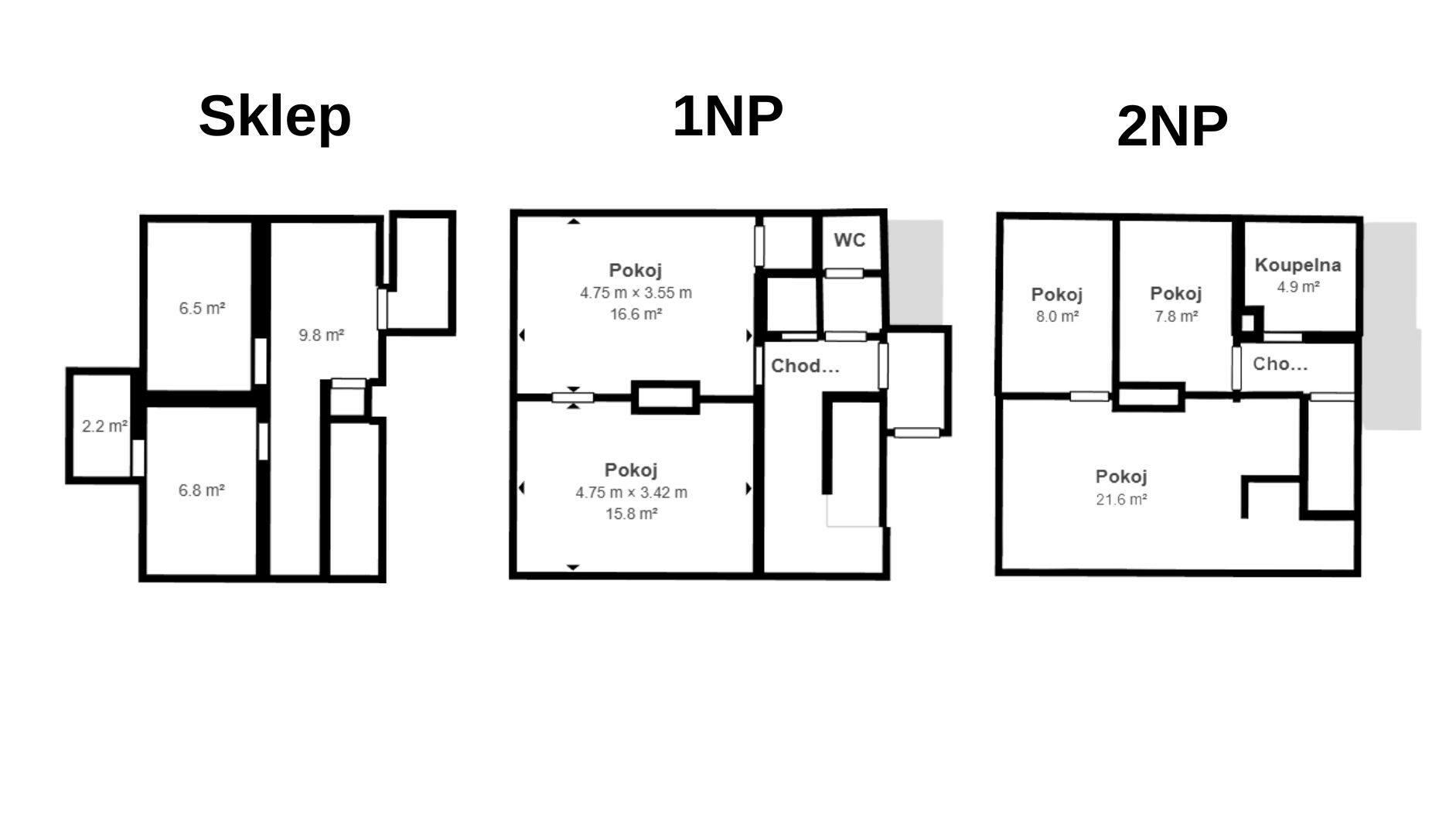 SKLEP: Technická místnost s plynovým kotlem, koupelna, WC, dvě komory. Vstup z domu i ze zahrady.