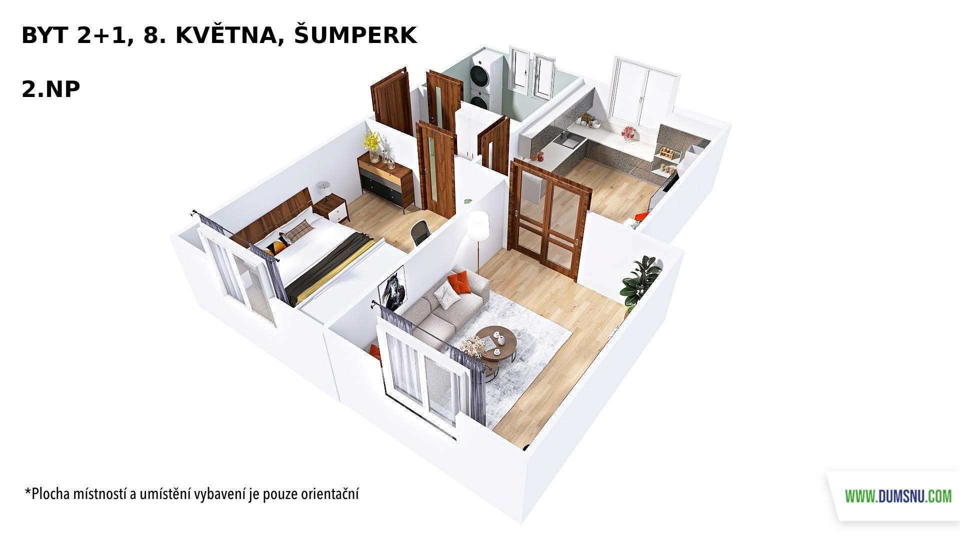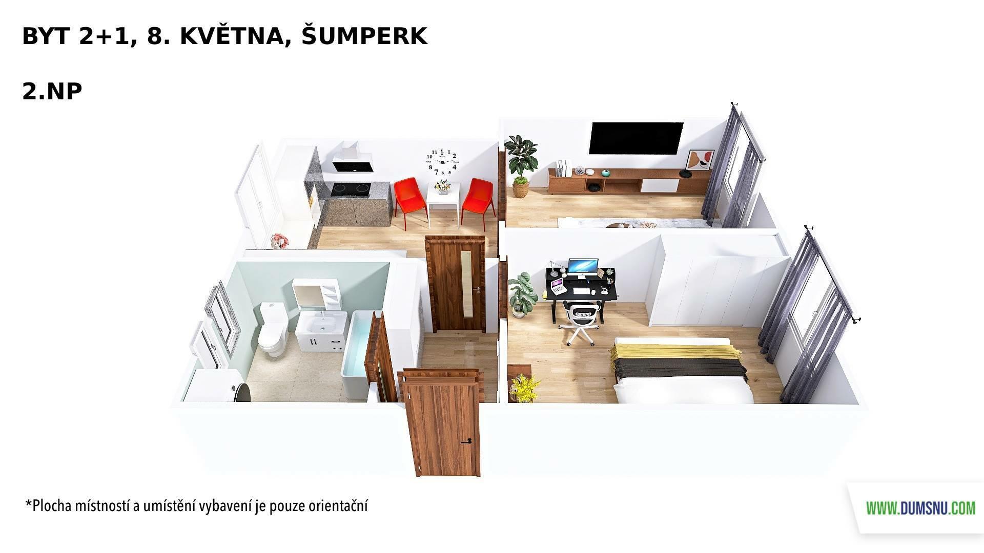 Nabízíme k dlouhodobému pronájmu velmi pěkný byt 2+1, který se nachází v cihlovém domě na ulici 8. května v Šumperku. Byt je umístěn ve 2. nadzemním podlaží bez výtahu a prošel velmi vkusnou rekonstrukcí, která mu dodala moderní a útulnou atmosféru.