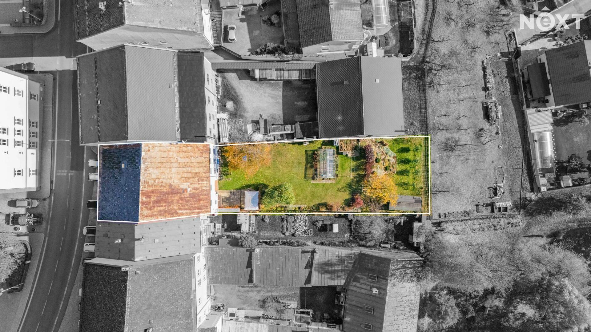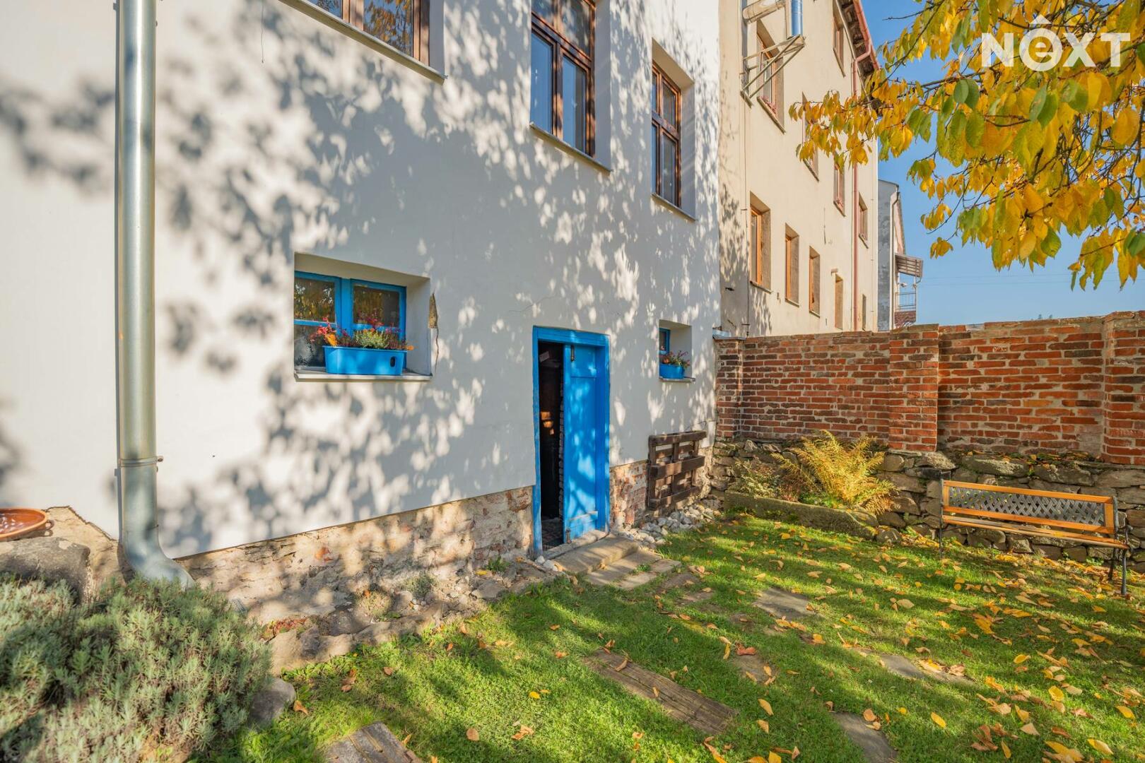 Za domem se rozkládá zahrádka ukrytá před ruchem náměstí, ideální pro relaxaci, posezení s přáteli nebo jako venkovní zóna pro hosty cukrárny. Průchod z ulice zároveň zajišťuje pohodlný přístup i praktické propojení všech částí objektu.