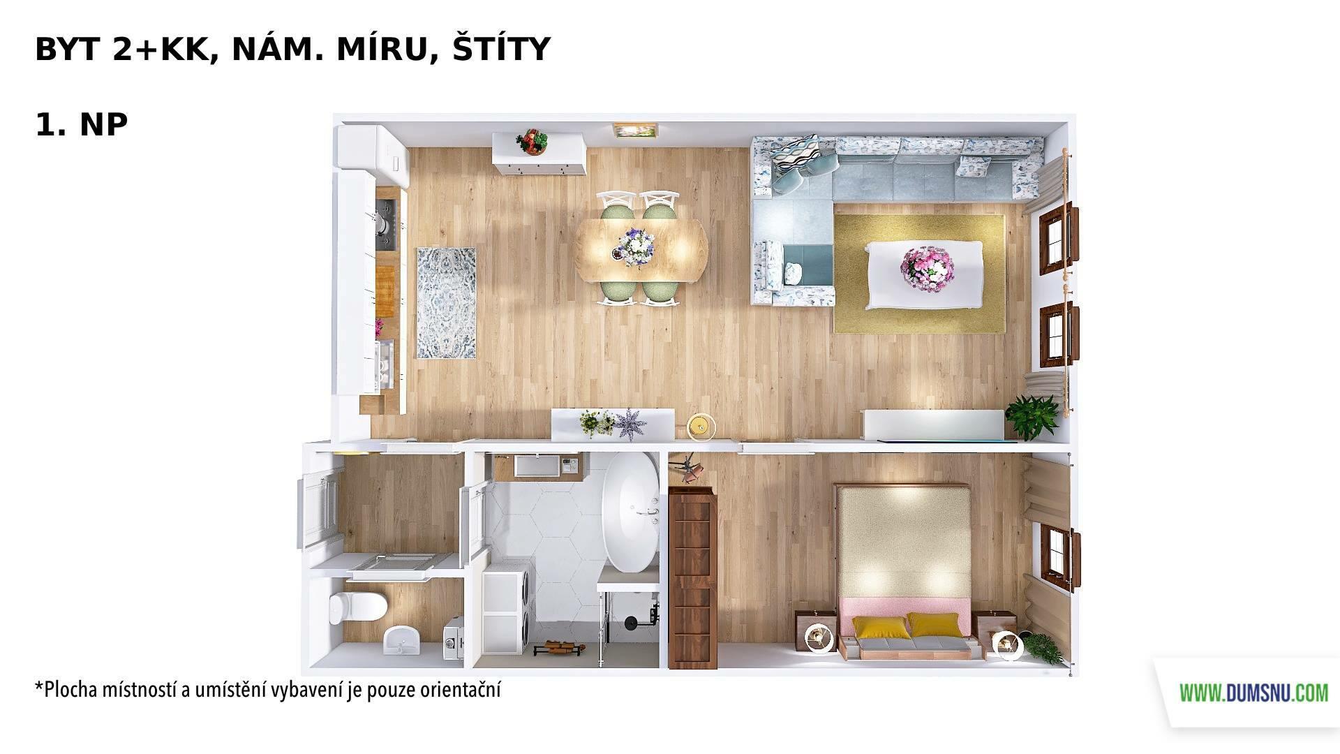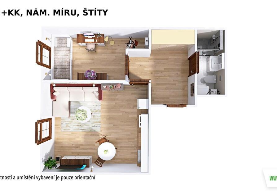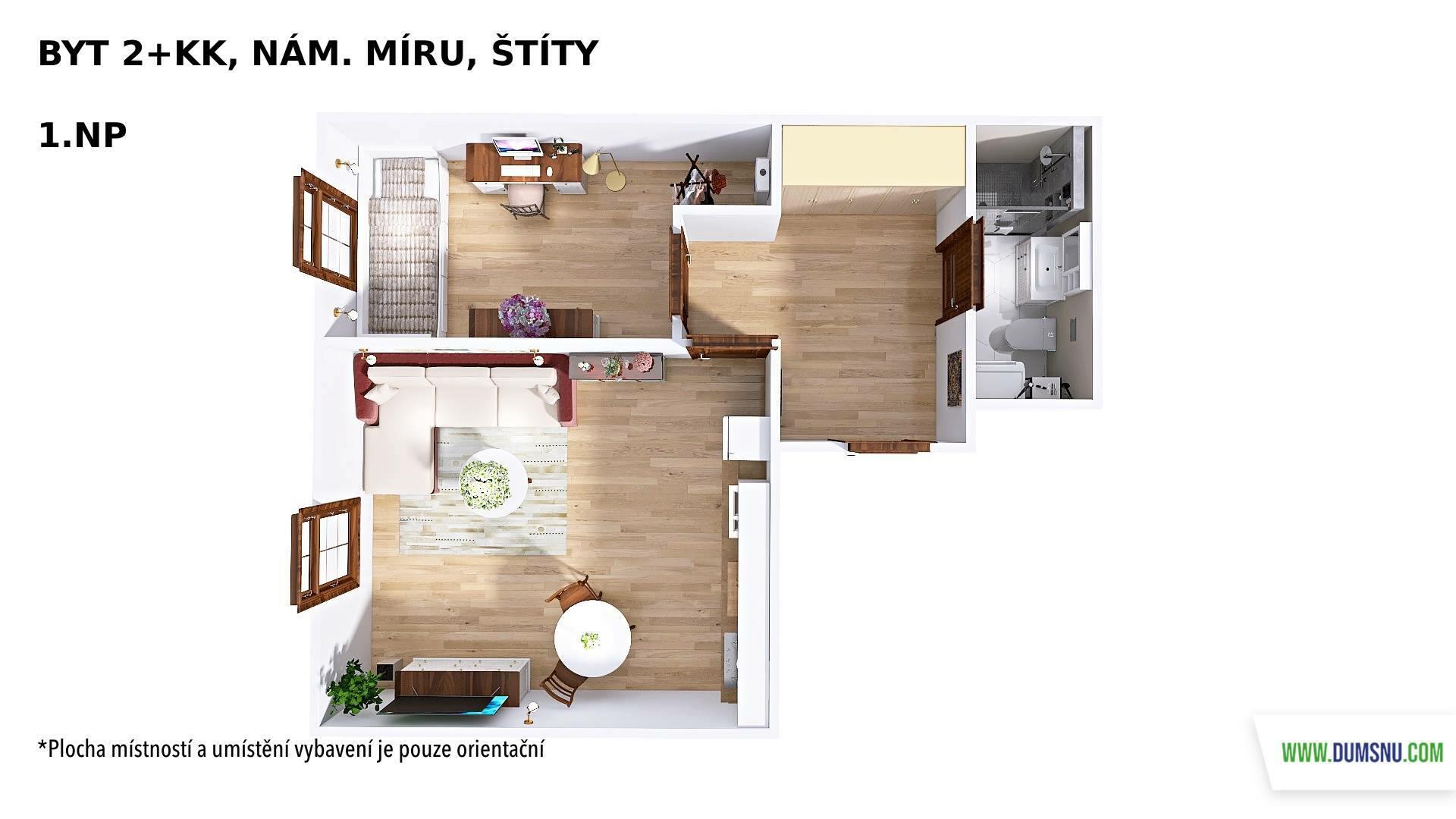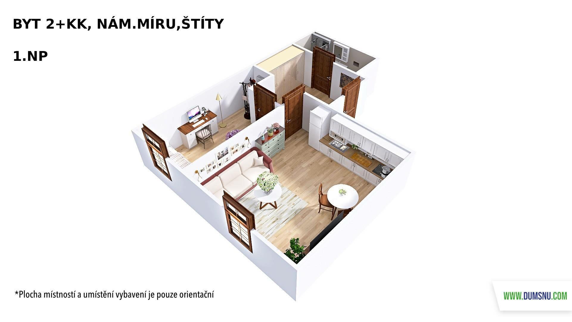 Dům stojí na hlavním náměstí města Štíty, v bezprostřední blízkosti obchodů, pošty, školy i zastávek veřejné dopravy.