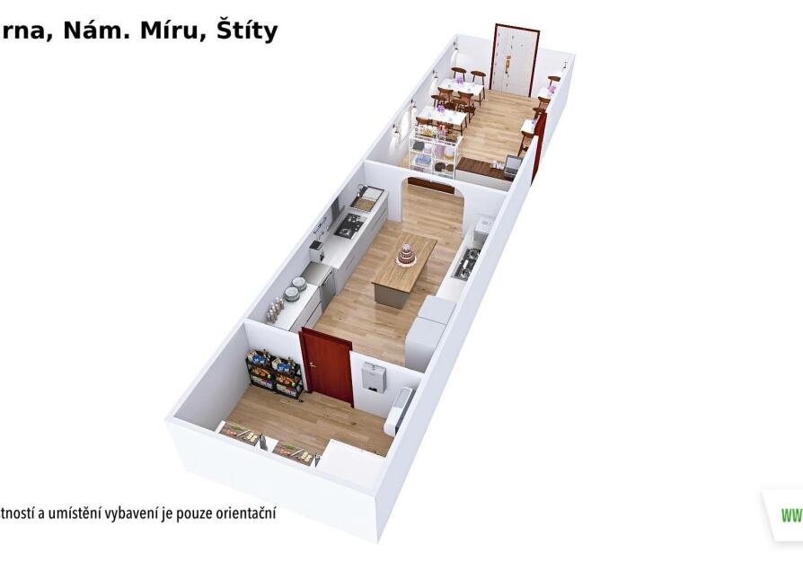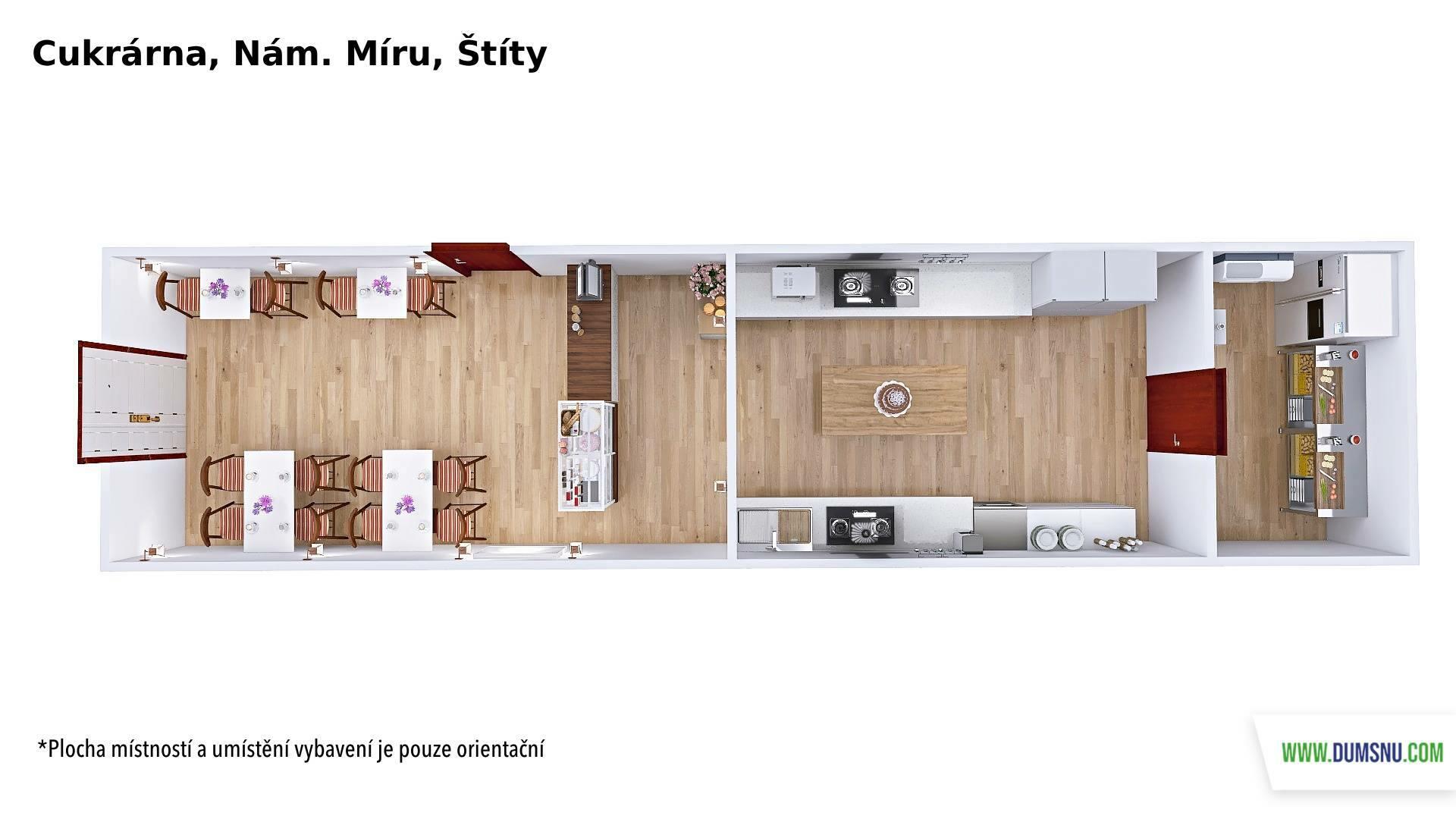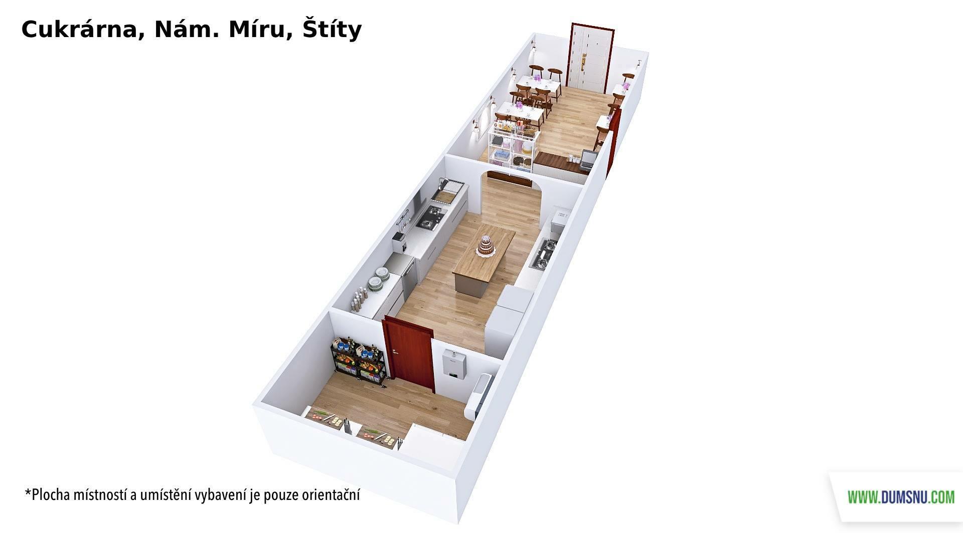 V přízemí objektu se nachází oblíbená cukrárna, která již řadu let úspěšně funguje a těší se stálé klientele z řad místních i návštěvníků města. Prostory jsou kompletně vybavené a připravené k okamžitému pokračování provozu, nebo je lze využít i pro jiný typ denního podnikání – kavárnu, bistro, vinotéku či obchod.