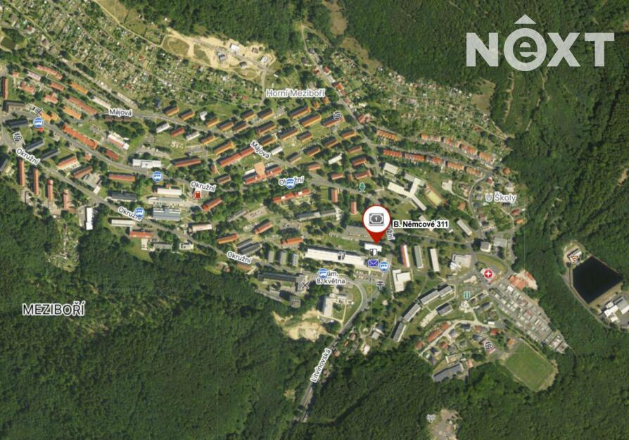 Byt se nachází v klidné a vyhledávané lokalitě Meziboří s kompletní občanskou vybaveností. V docházkové vzdálenosti najdete základní a mateřskou školu, obchody, poštu, lékaře a další služby. Zastávka MHD je vzdálena pouze 150 metrů s pravidelným spojením do Litvínova a okolí. Lokalita nabízí také sportovní vyžití, městskou knihovnu a dětská hřiště.