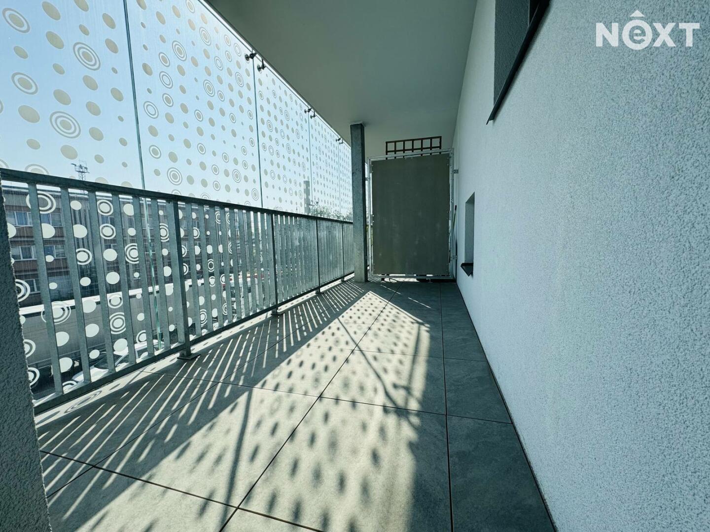 Byt je kompletně zařízený moderním nábytkem na míru – nechybí rozkládací sedačka, konferenční stolek, TV skříňka, jídelní stůl se dvěma židlemi, úložné skříně a věšáková stěna v předsíni. Na všech oknech jsou žaluzie, které zaručí dostatek soukromí i kontrolu světla. Z obývací části vede vstup na prostorný balkon o velikosti 8,6 m², který poskytuje příjemné posezení a dostatek prostoru pro relaxaci.