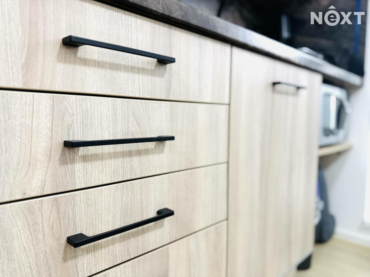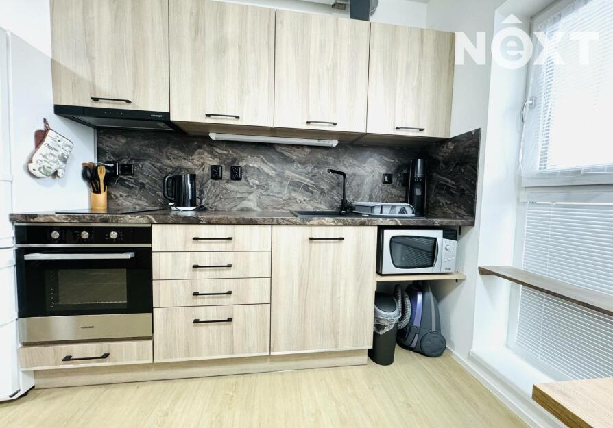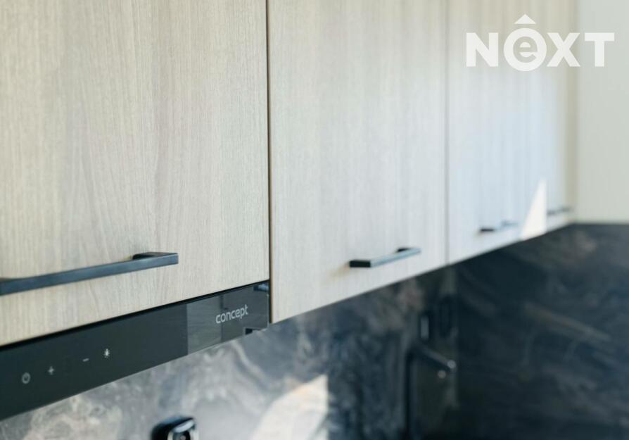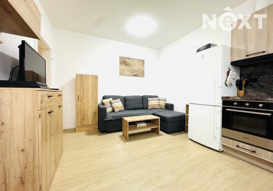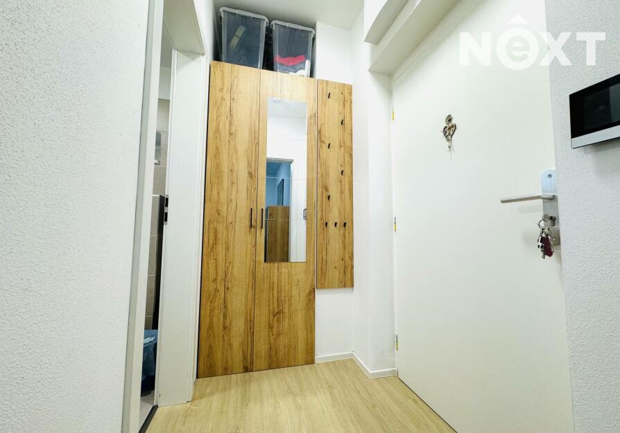 Byt vás přivítá promyšlenou dispozicí a čistým designem. Ze vstupní chodby o velikosti 2,3 m² se vstupuje do koupelny se sprchovým koutem, toaletou a pračkou o výměře 3,5 m². Hlavní obytný prostor s kuchyňským koutem o velikosti 16,5 m² působí vzdušně a svěže – kuchyňská linka je vybavena vestavěnými spotřebiči, lednicí, mikrovlnnou troubou i elegantním černým dřezem.