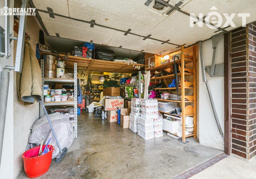 Rozměry garáže jsou 5 m na délku a 3 m na šířku, což zajišťuje pohodlné parkování osobního vozu nebo možnost využití jako skladového prostoru. Součástí garáže je elektřina 230 V / 380 V s vlastním elektroměrem – ideální pro nabíjení, údržbu vozidla nebo jako dílna.