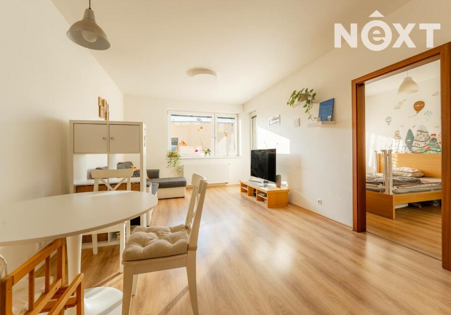 Interiér bytu působí vzdušně a útulně. Obývací pokoj s kuchyňským koutem navazuje na balkon orientovaný na jihozápad, který je přístupný také z ložnice – ideální místo pro ranní kávu nebo odpolední relax na slunci. Ložnice i chodba jsou vybaveny vestavěnými skříněmi, které poskytují dostatek úložného prostoru. Koupelna je vybavena vanou, toaleta je samostatná.
