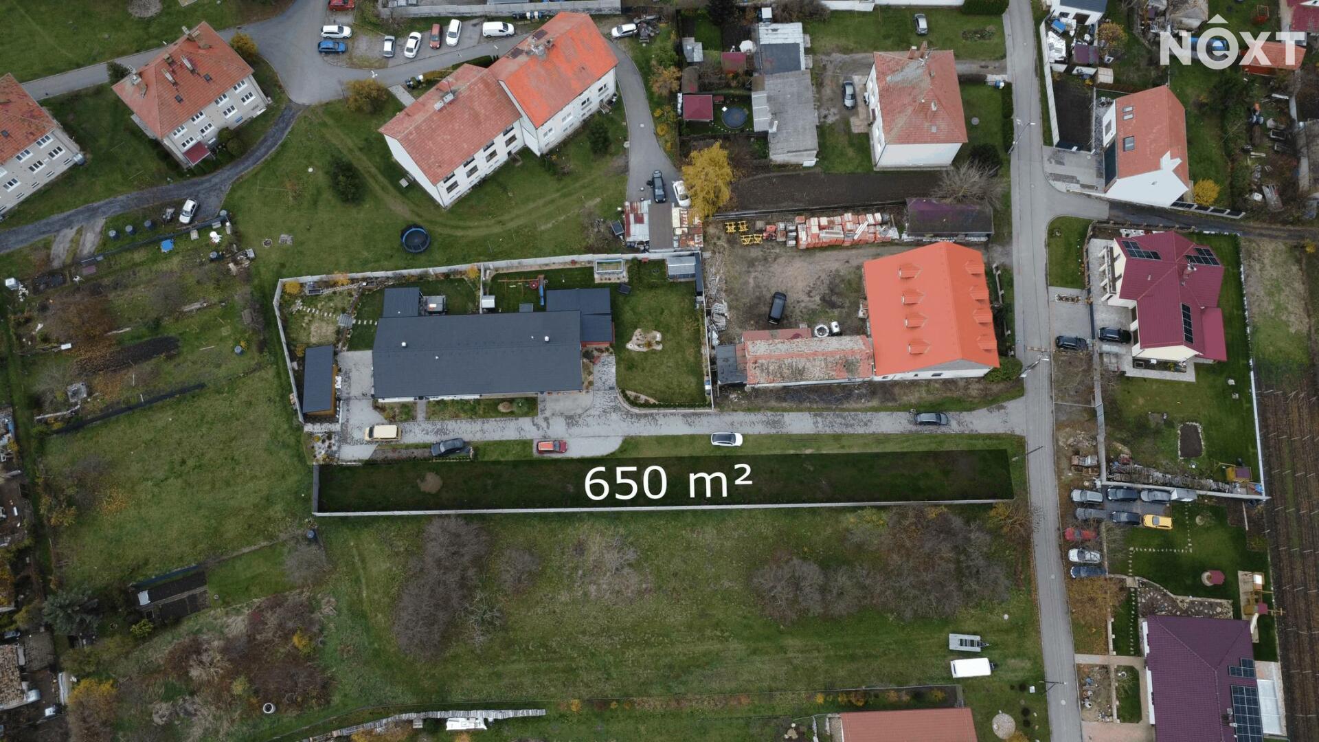 Inženýrské sítě se nachází v blízkosti pozemku. Možnost rozdělení na dvě samostatné parcely o velikosti 338 m² a 312 m². Není nutný odkup celé plochy. Zadní část pozemku je oplocena betonovým plotem. Příjezdová cesta je vydlážděná. Šířka pozemku 6,73 m.