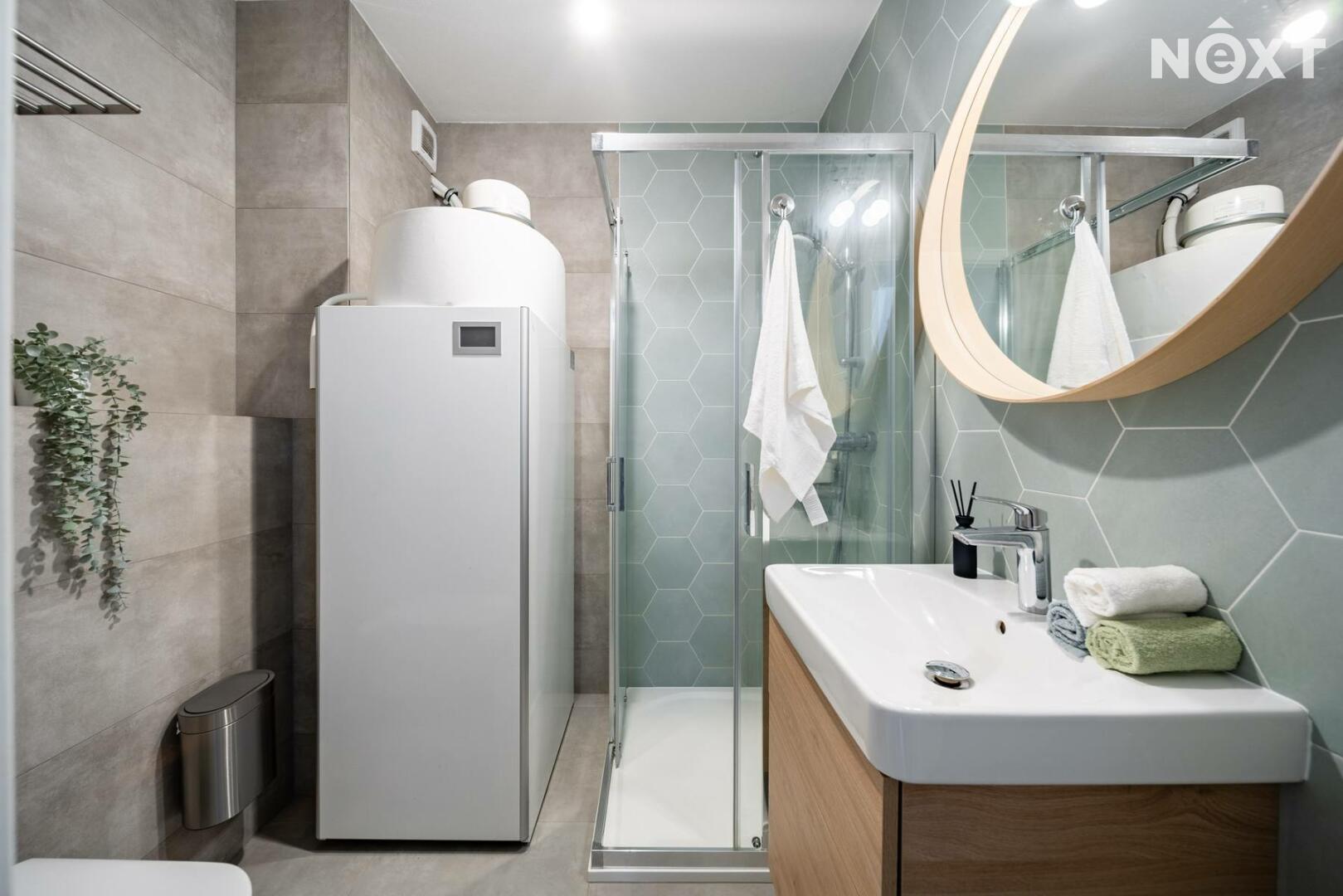 V přízemí se dále nachází technická místnost s WC a sprchovým koutem a také komora ukrytá pod schodištěm, která poskytuje praktický úložný prostor pro každodenní provoz domácnosti.