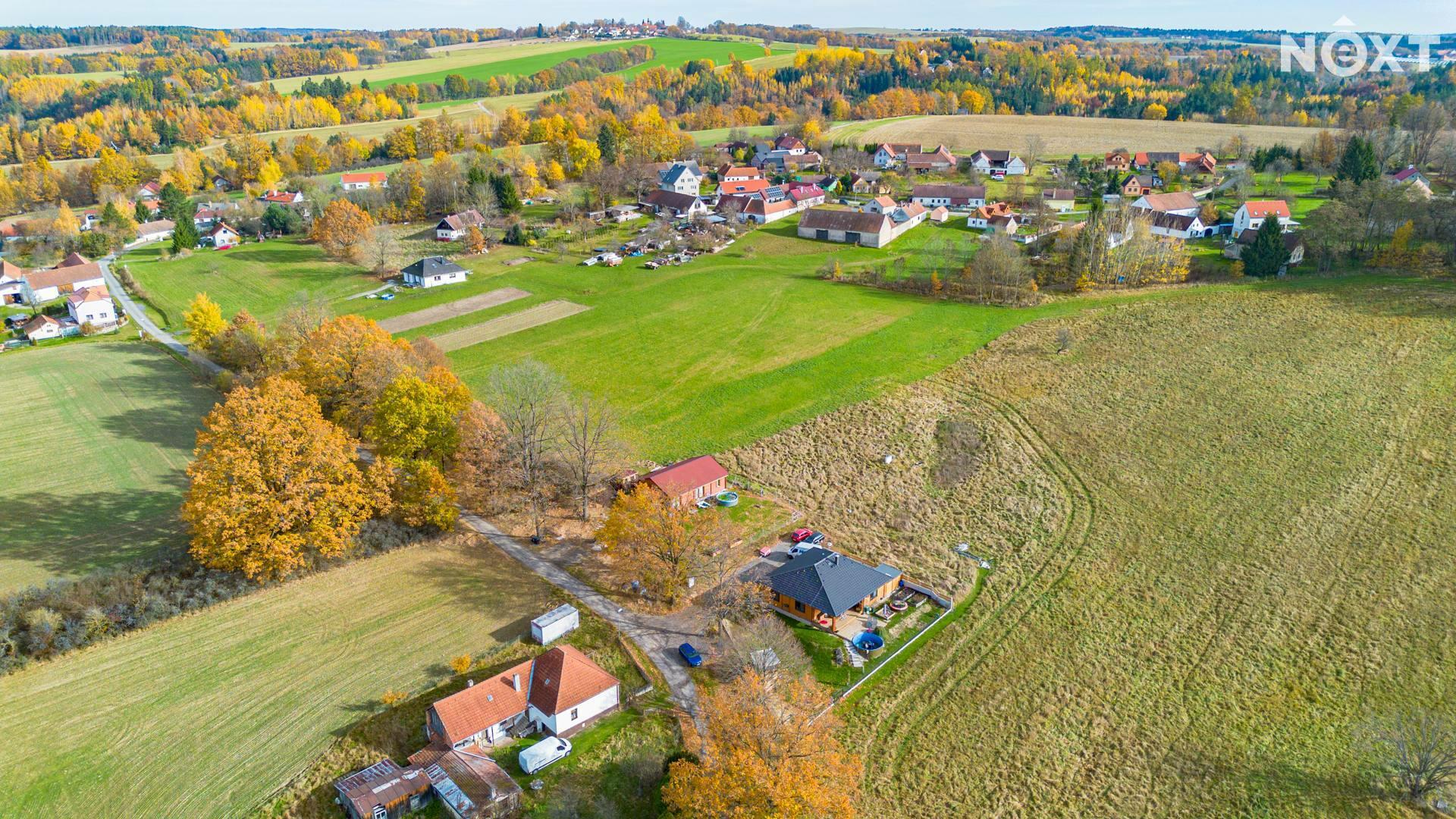 Pozemek se nachází v malebné části Jihočeské krajiny, která nabízí krásný výhled do okolí a klid pro spokojené bydlení.