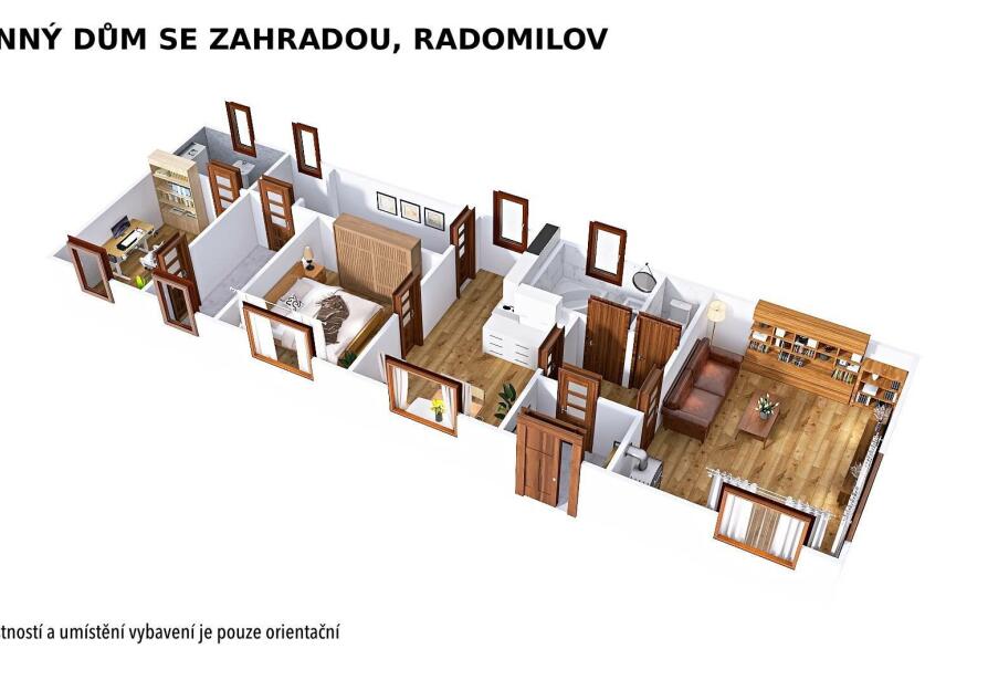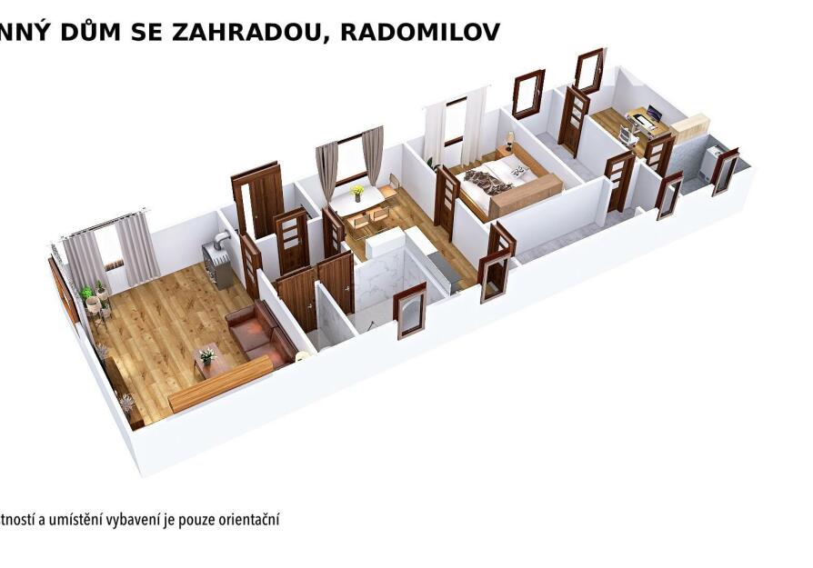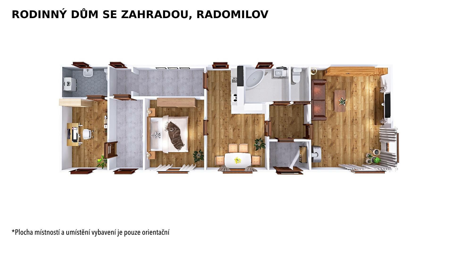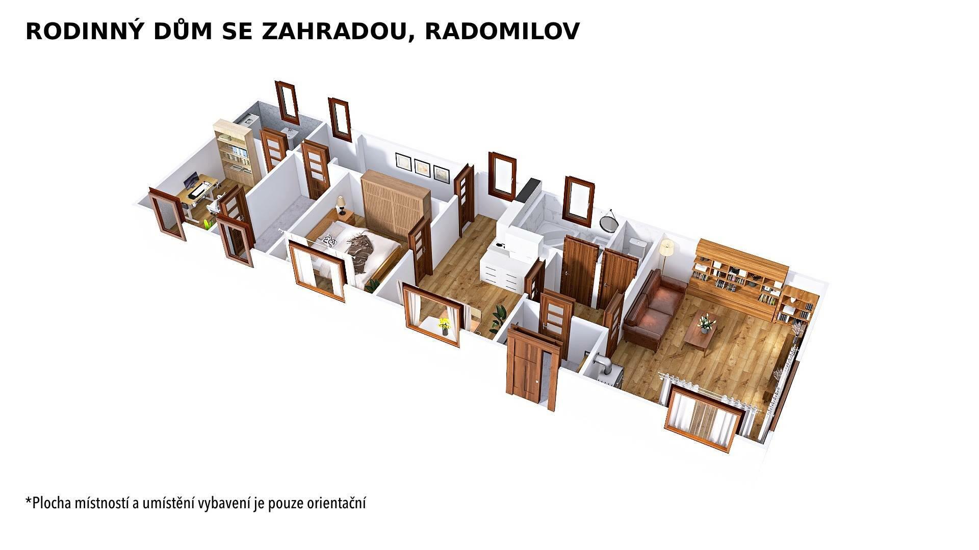 V malebné obci Radomilov nabízíme přízemní rodinný dům o dispozici 2+1 s technickou místností a stodolou.