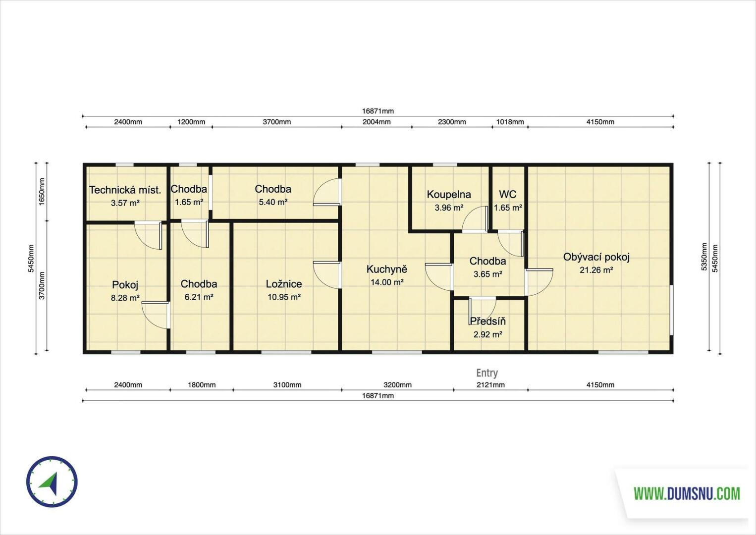 Uvnitř domu se nachází kuchyň, chodba, ložnice, koupelna s vanou a samostatná toaleta.