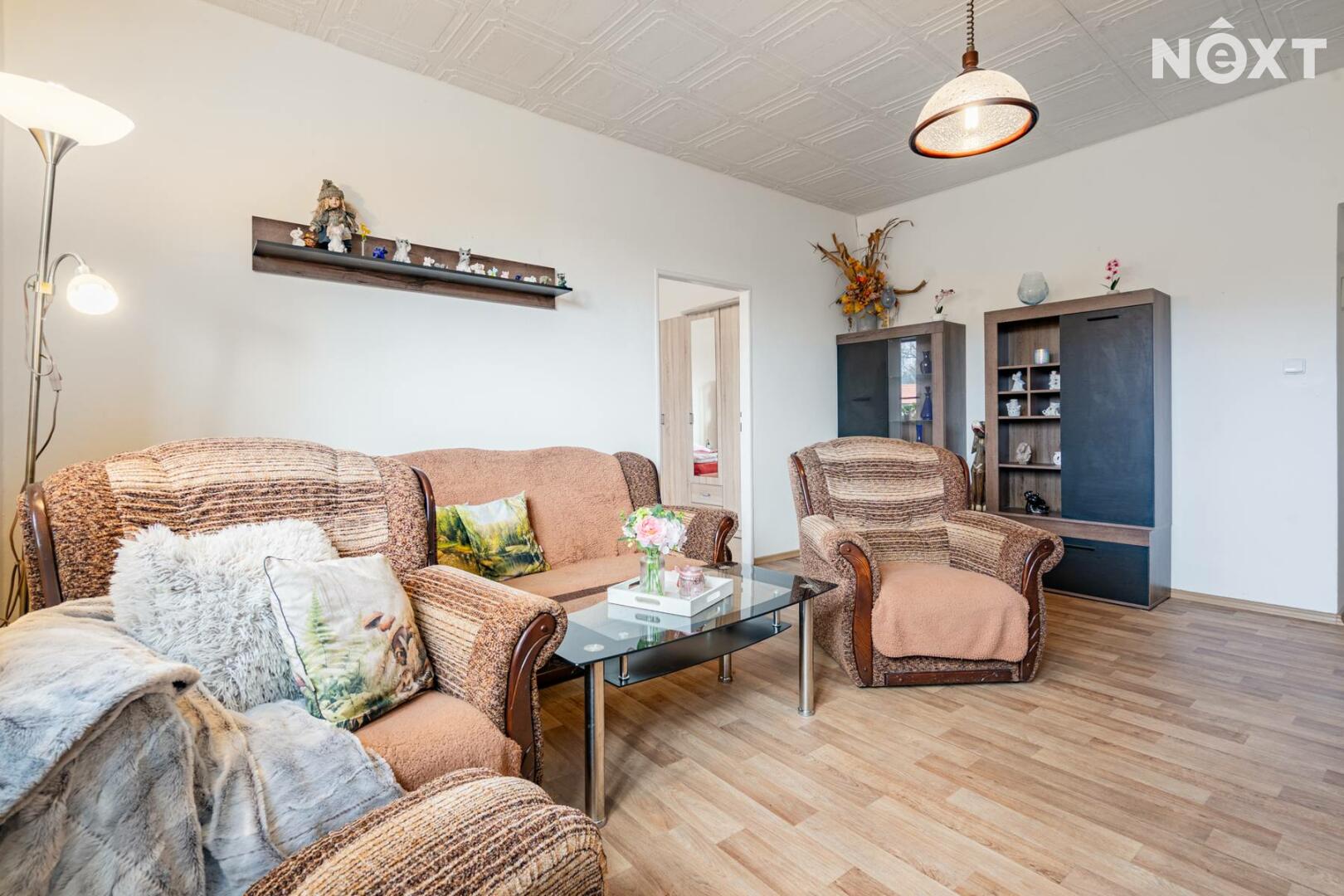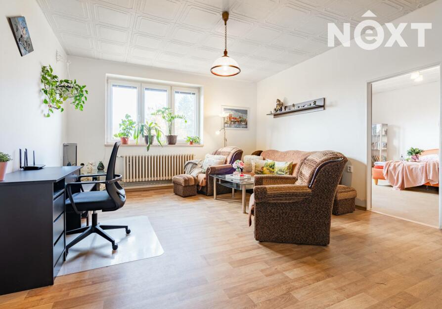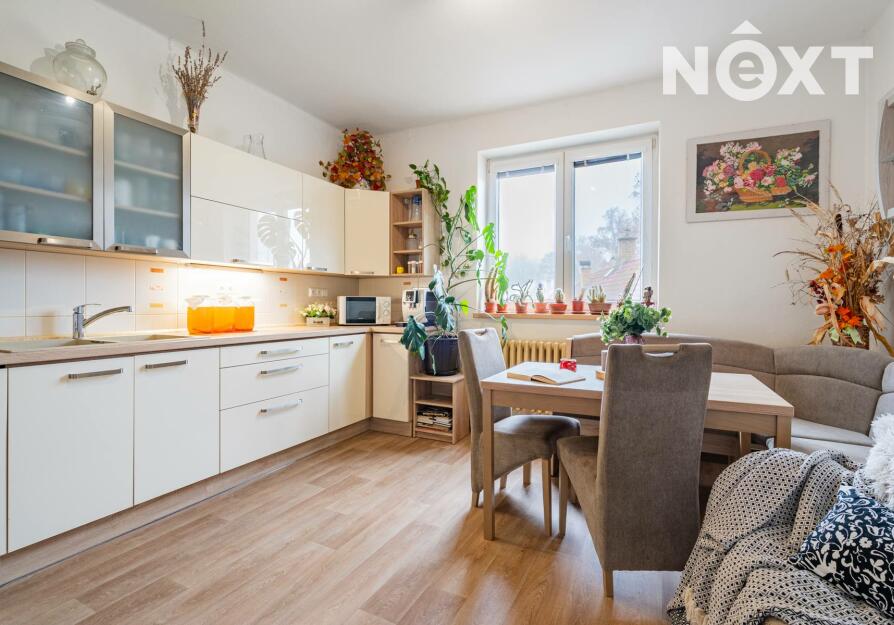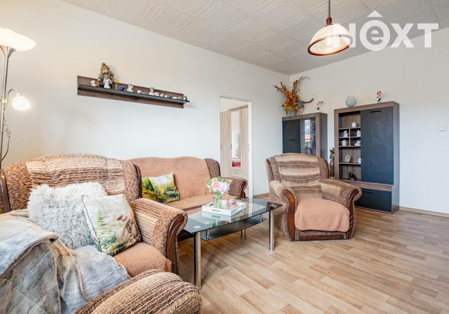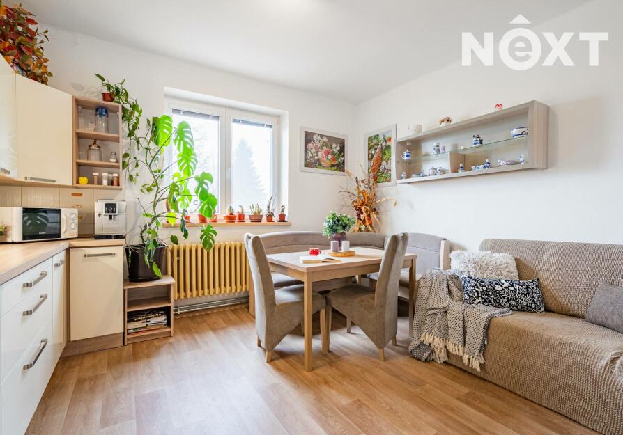 Byt prošel v roce 2021 částečnou rekonstrukcí – upraveny byly podlahy, kuchyně i koupelna. Dispozice nabízí prostorný obývací pokoj, kuchyň s jídelní částí a dva samostatné pokoje. Součástí prodeje je i sklepní místnosti a praktická komora umístěná přímo na patře.