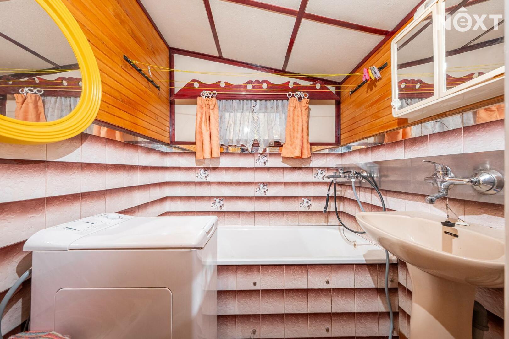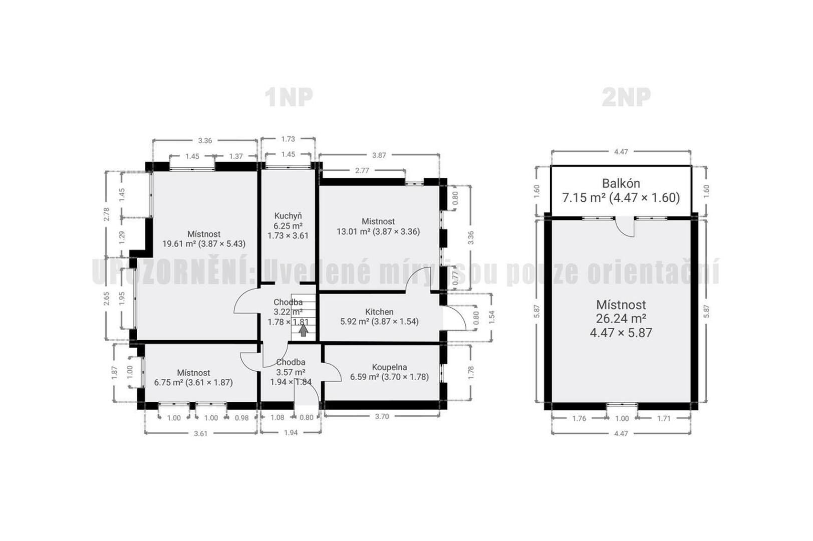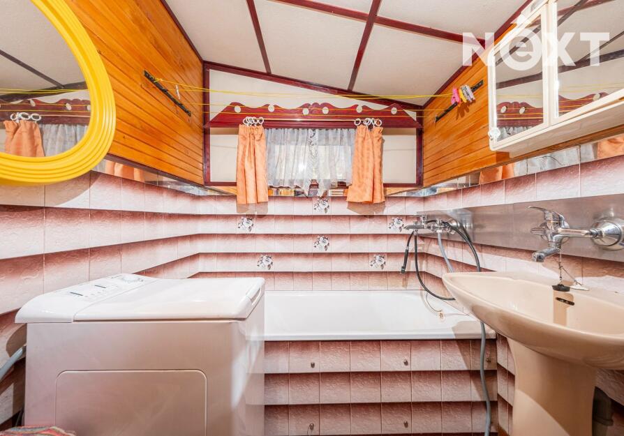 1NP - zádveří, veranda, obývací pokoj, kuchyně, pokoj, koupelna s WC - vana, prostor pro pračku