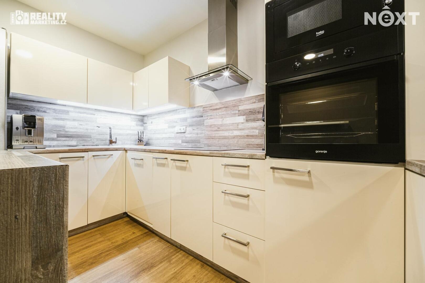 Dominantní obytný prostor s plně vybavenou kuchyňskou linkou: indukční varná deska, trouba, mikrovlnka, myčka, digestoř s odtahem a granitový dřez. Součástí je také praktický kuchyňský ostrůvek.