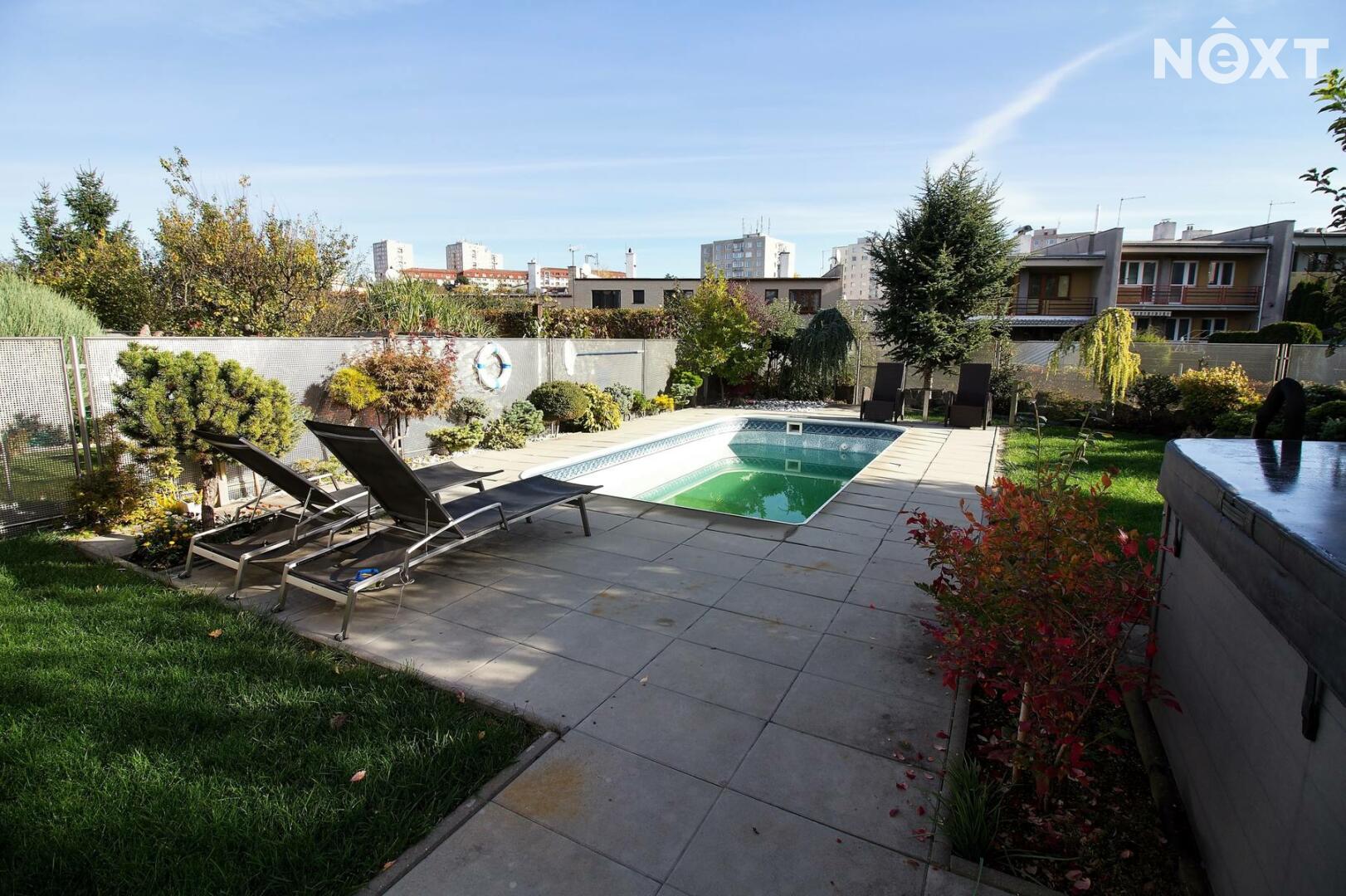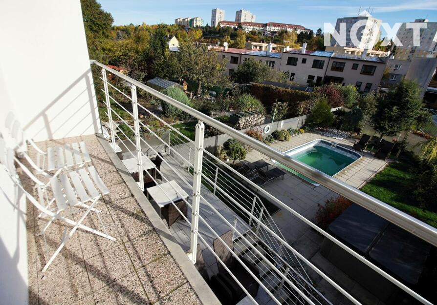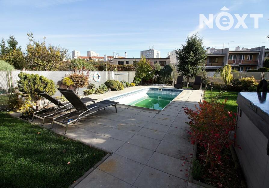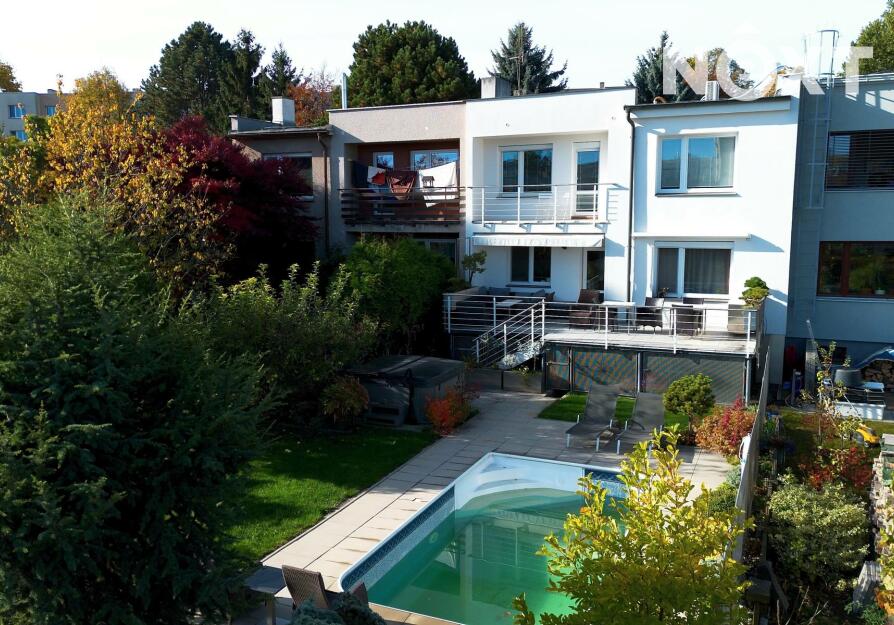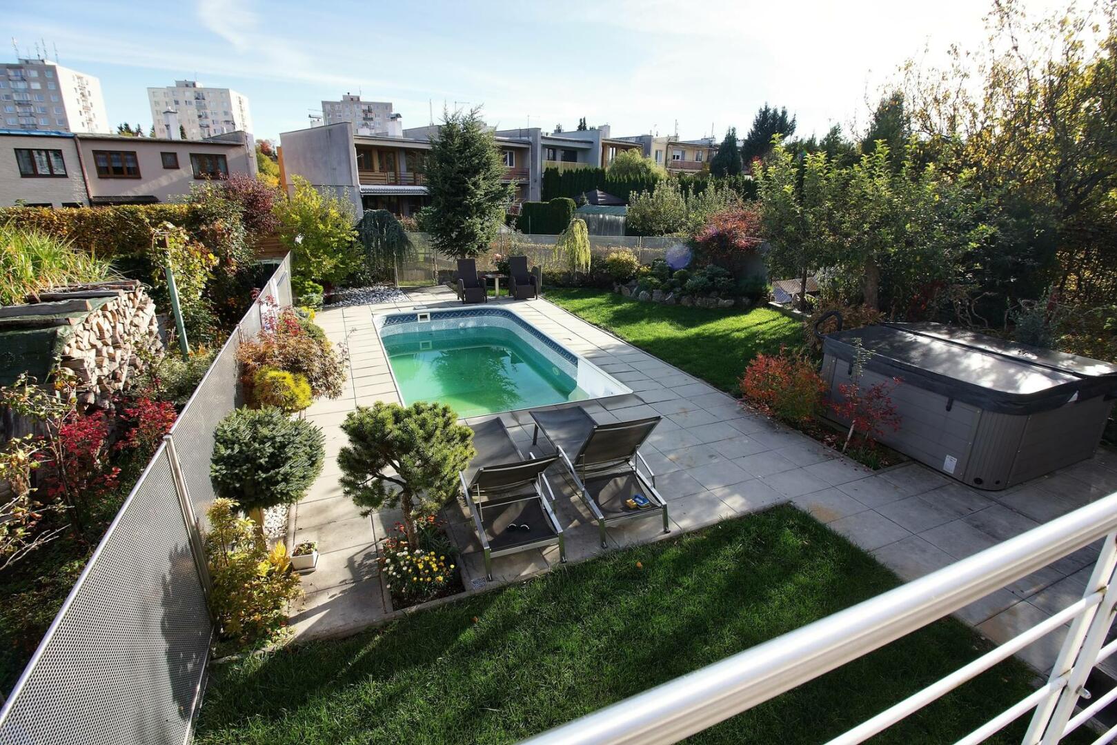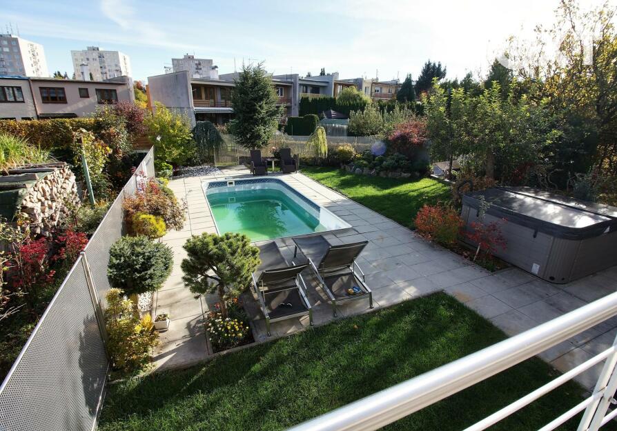 K domu náleží menší, rovinatá a upravená zahrada s okrasnými dřevinami a stromy, která poskytuje dostatek soukromí. Součástí je bazén a velká vířivka – ideální místo pro relaxaci.