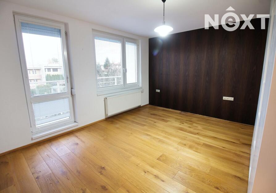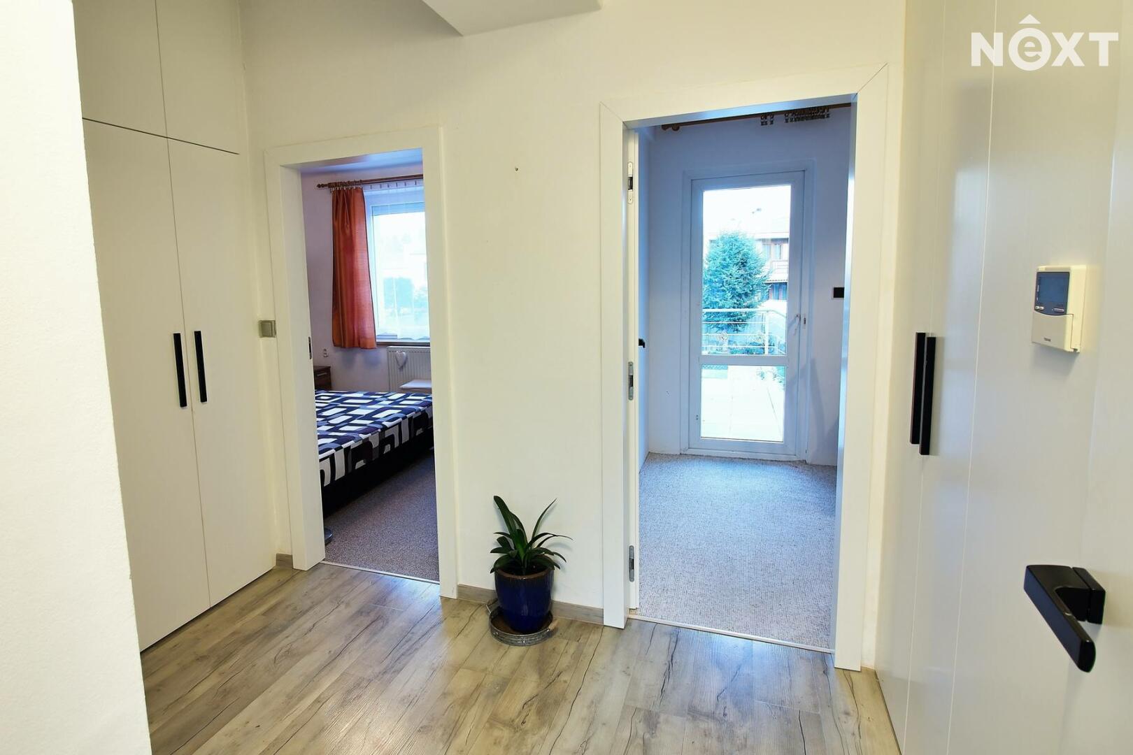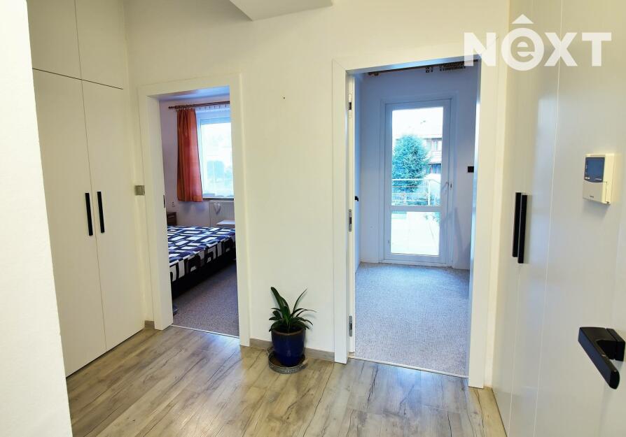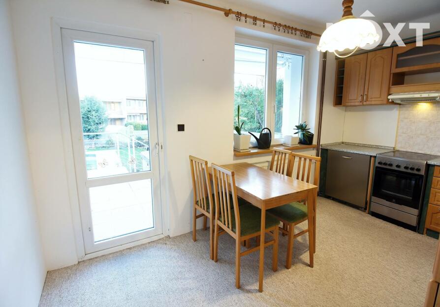Obývací pokoj, ložnice, kuchyně orientovaná do zahrady, koupelna, samostatné WC, prostorná předsíň, šatna a garáž. Z ložnice je vstup na velkou lodžii s výhledem do zahrady.