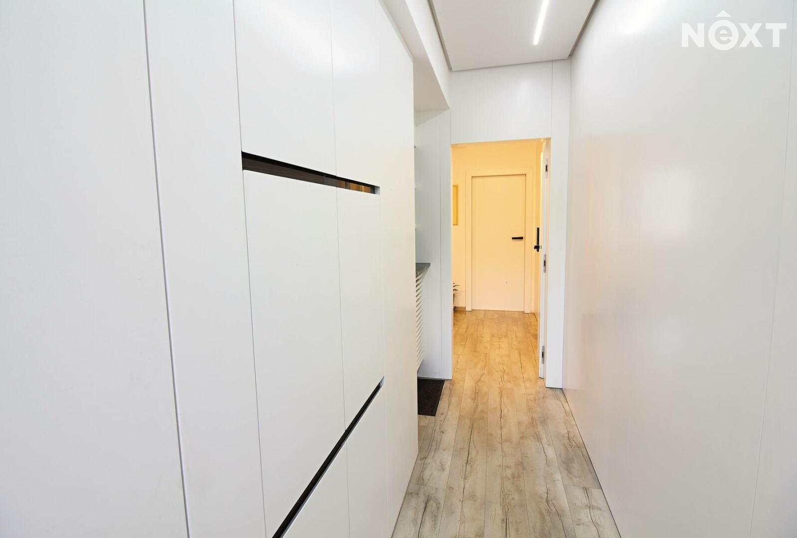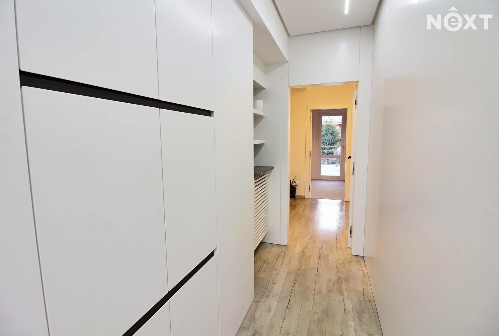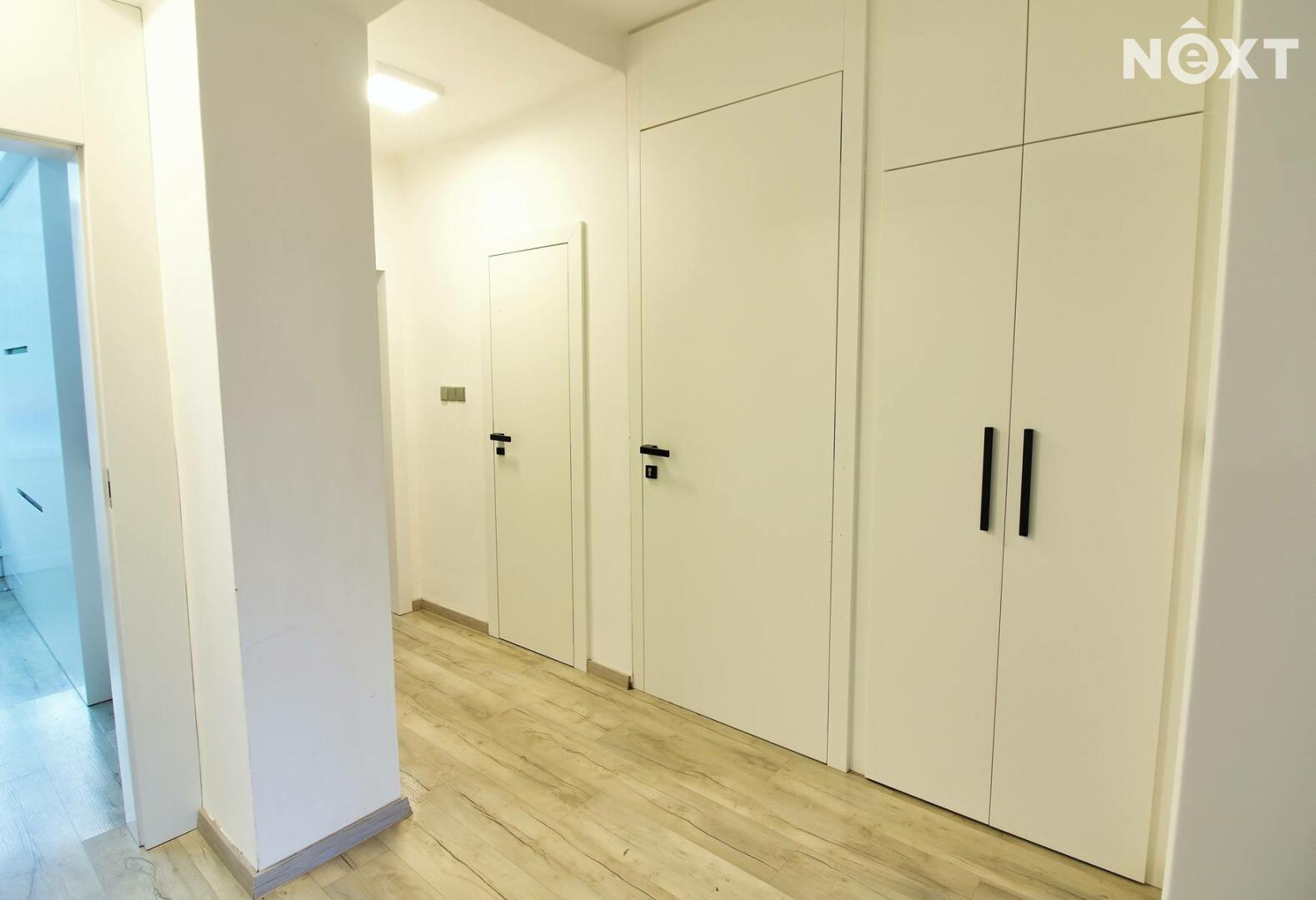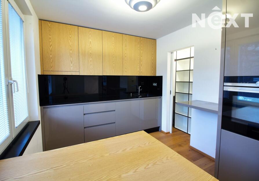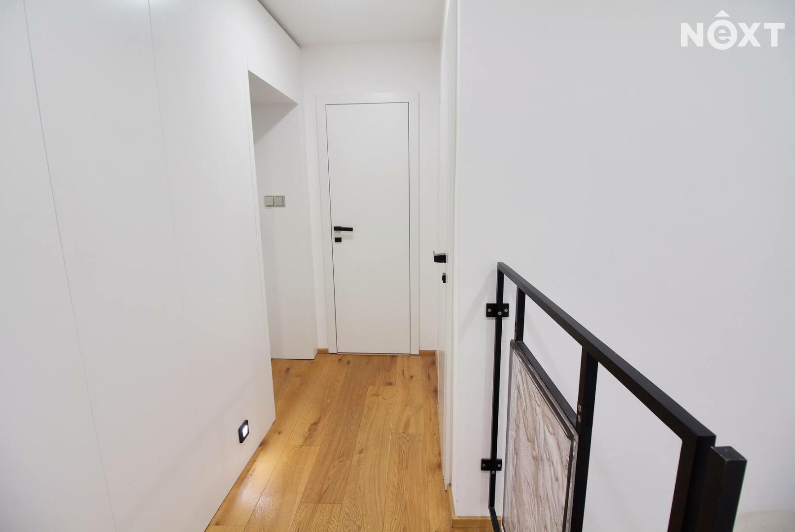 Kuchyně, ložnice s přístupem na terasu, obývací pokoj a další obytná místnost s prostornou šatnou. Koupelna s WC, předsíň a schodiště. Každá místnost je vybavena klimatizační jednotkou. Součástí patra je také velká lodžie.