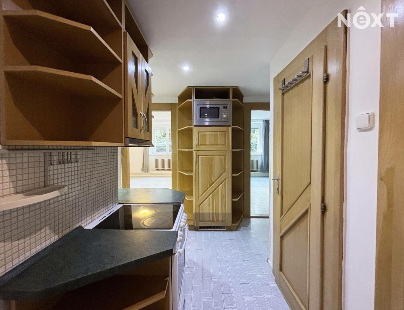 Bytová jednotka o celkové ploše cca 50 m2 se nachází ve sníženém přízemí dobře udržovaného cihlového domu s výtahem. Dispozičně je byt řešen jako dvě samostatné místnosti, kuchyně s menší komorou je umístěna ve vstupní hale za předsíní, koupelna s vanou a toaletou. Jelikož se nejedná o klasický byt 2kk, kdy je kuchyně umístěna v jedné z místností, je tak byt ideální na spolubydlení.