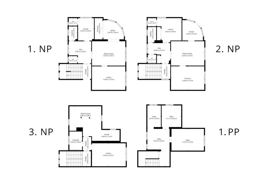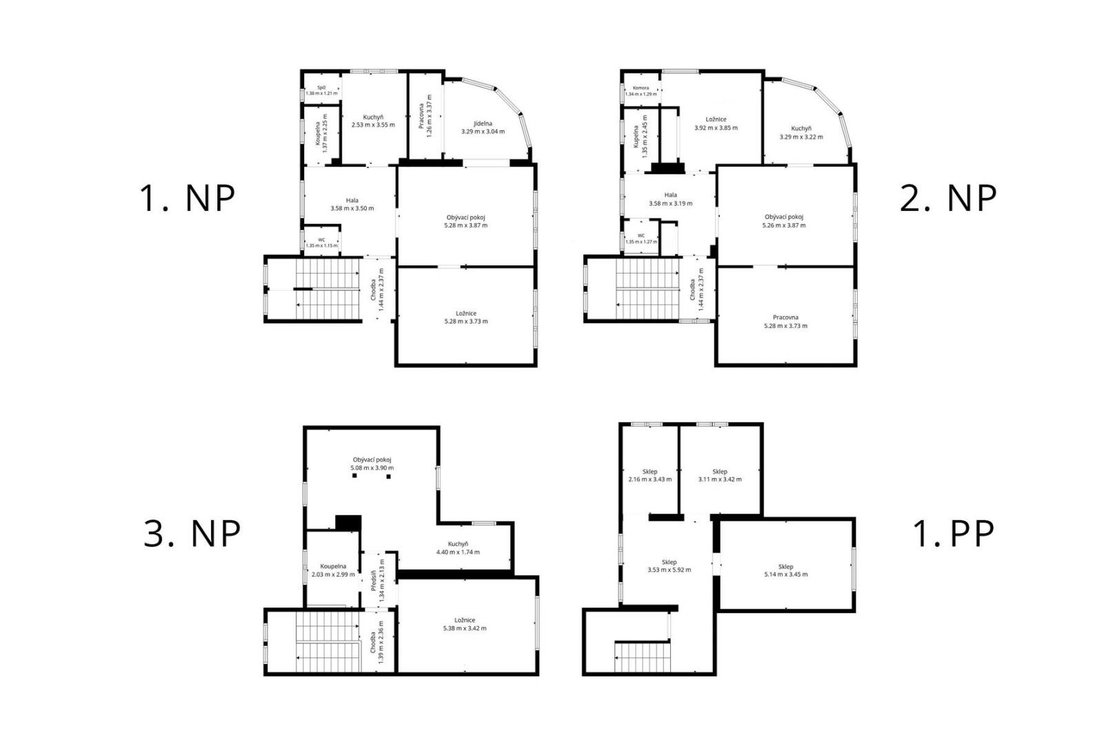 V 1. PP se nacházejí 4 sklepy o celkové ploše 57 m²