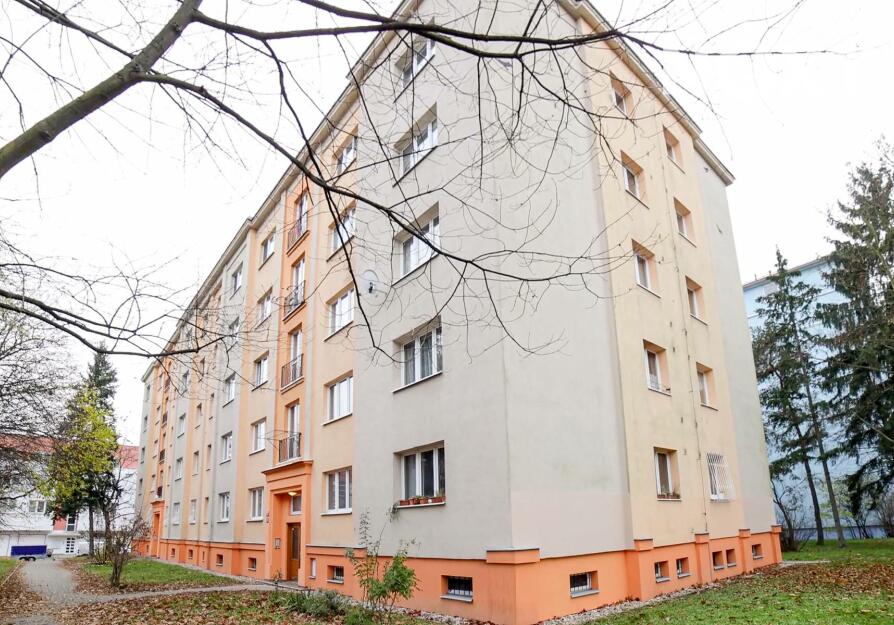 Dům je po revitalizaci — zateplení, nová fasáda, nová střecha, plastová okna, stoupačky, vstupní dveře, poštovní schránky.