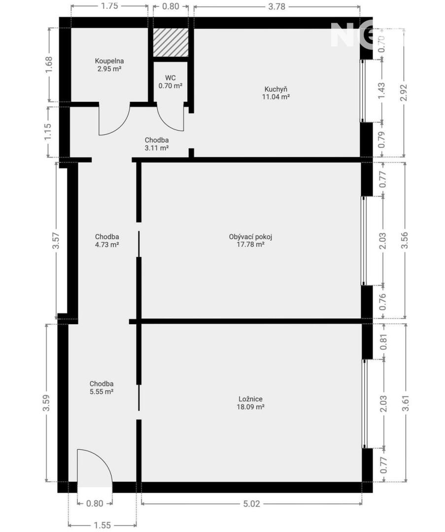 Byt prošel rekonstrukcí před 2 lety — v rámci ní byly kompletně řešeny elektrické rozvody, voda, odpady, omítky, dlažby a obklady, položené byly nové parkety, vyměněny dveře. Jádro je zděné.