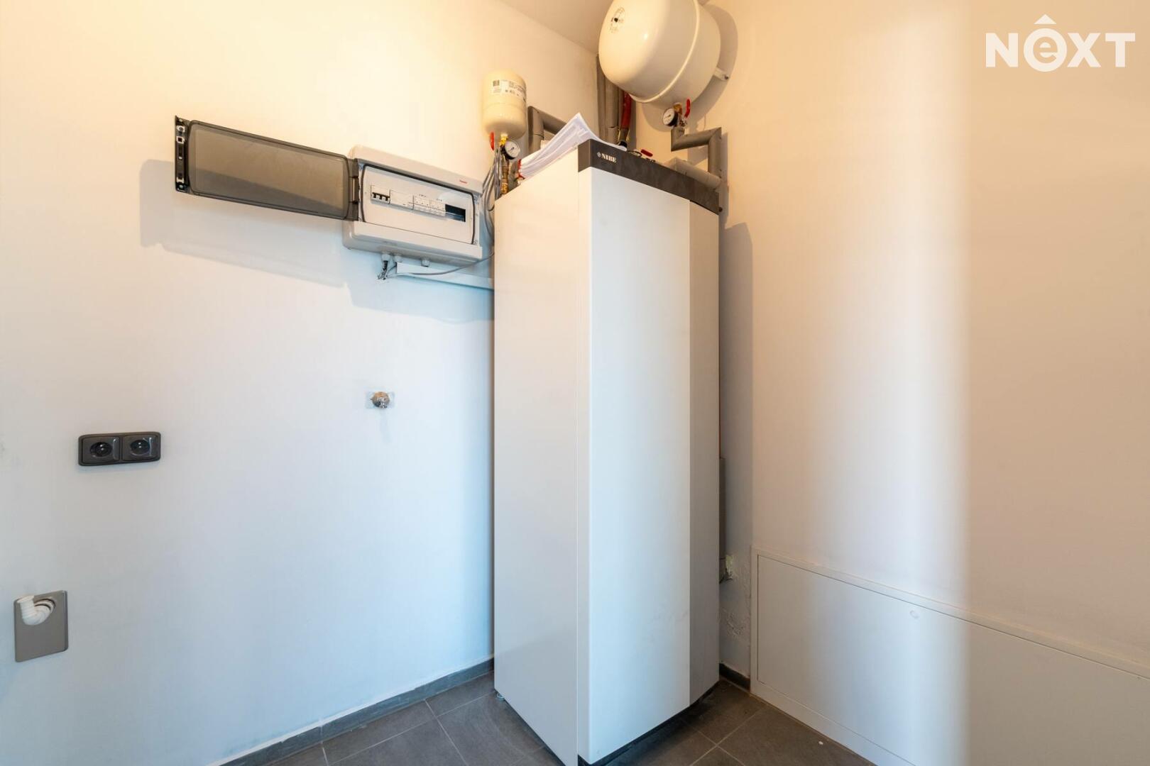 Dům je vytápěn teplovodním podlahovým topením napojeným na tepelné čerpadlo vzduch–voda, které zároveň zajišťuje ohřev teplé užitkové vody.
