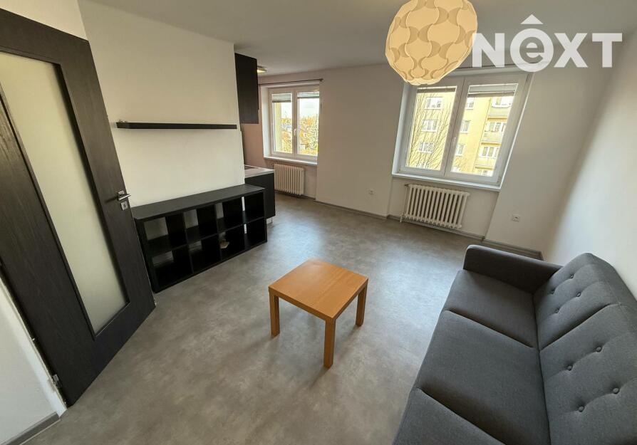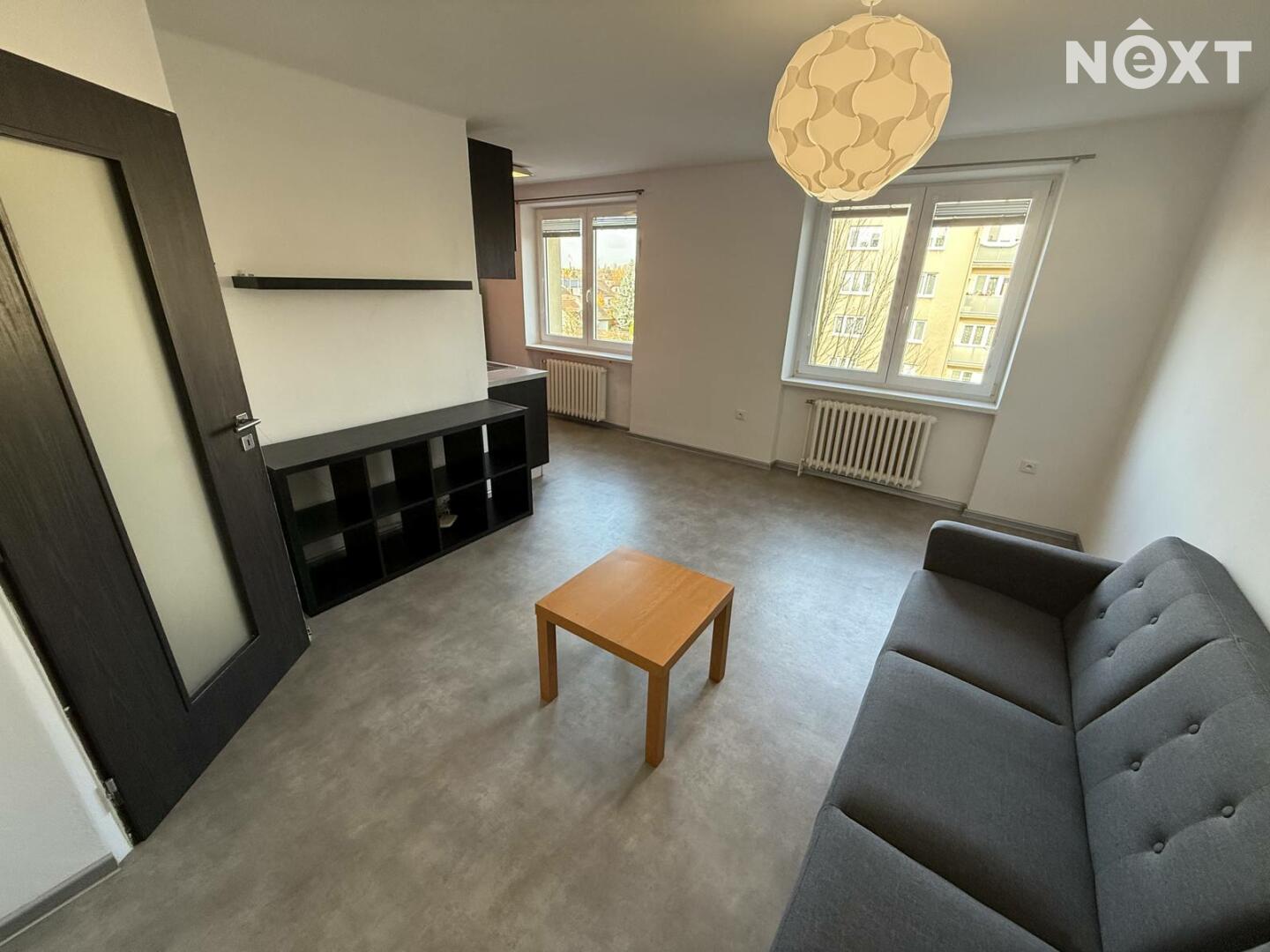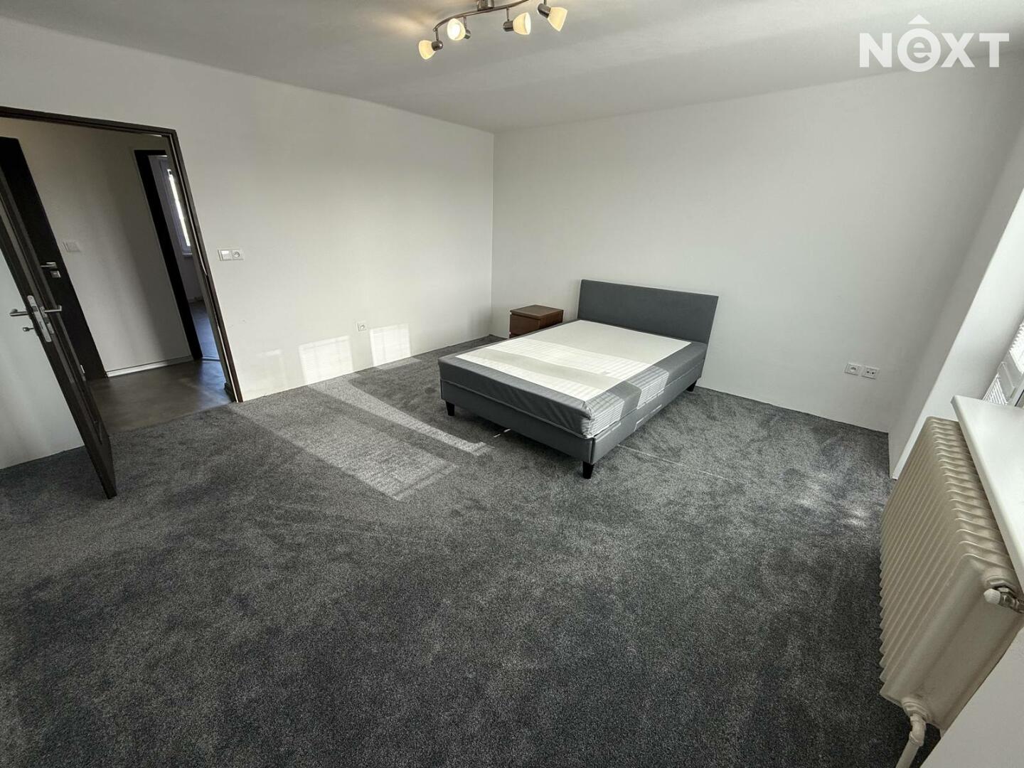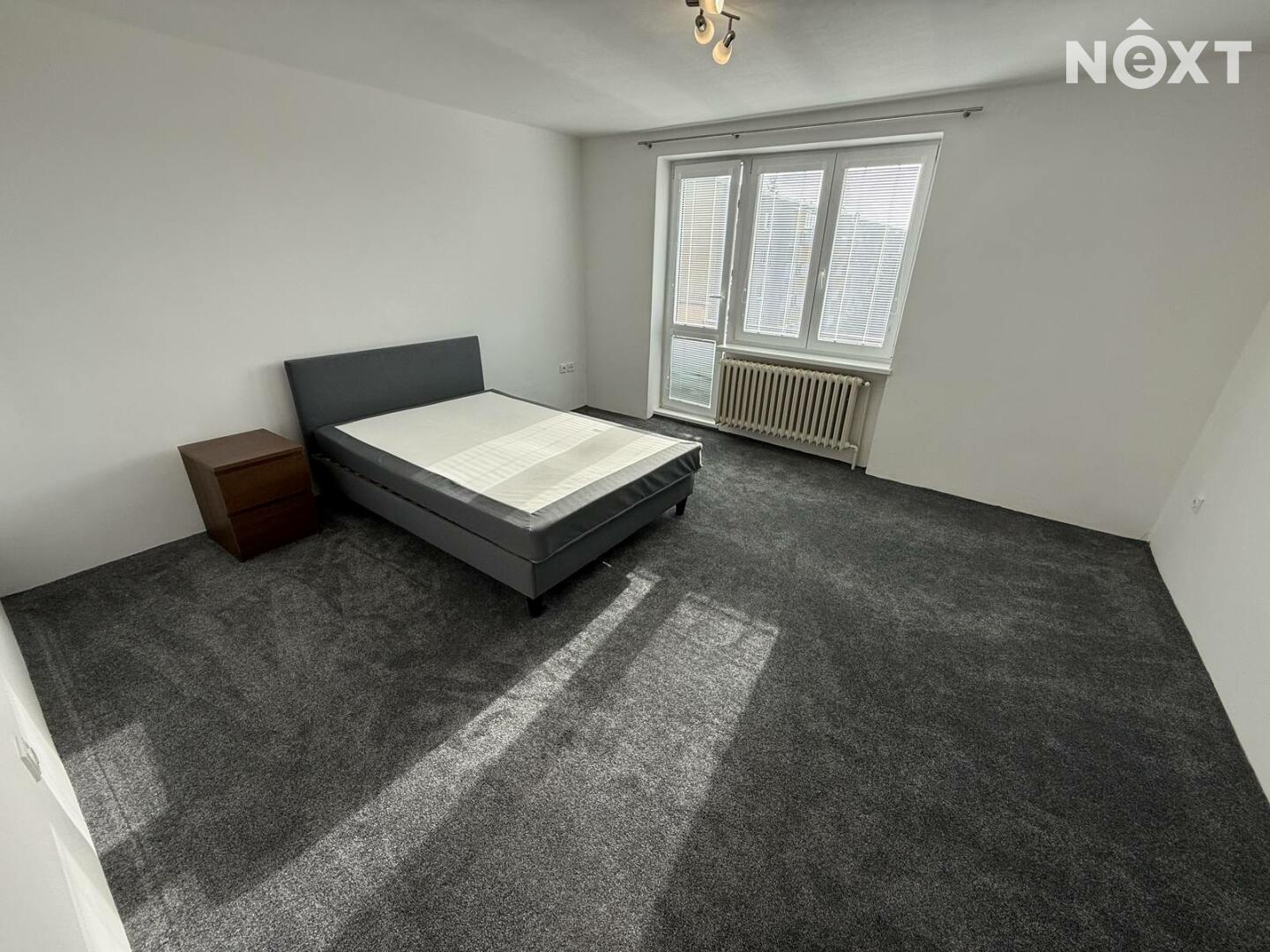 Dispozice: Obývací pokoj s kuchyňským koutem, velká ložnice se vstupem na lodžii, neprůchozí pokoj, koupelna s vanou a samostatné WC. Sklepní kóje není součástí pronájmu.