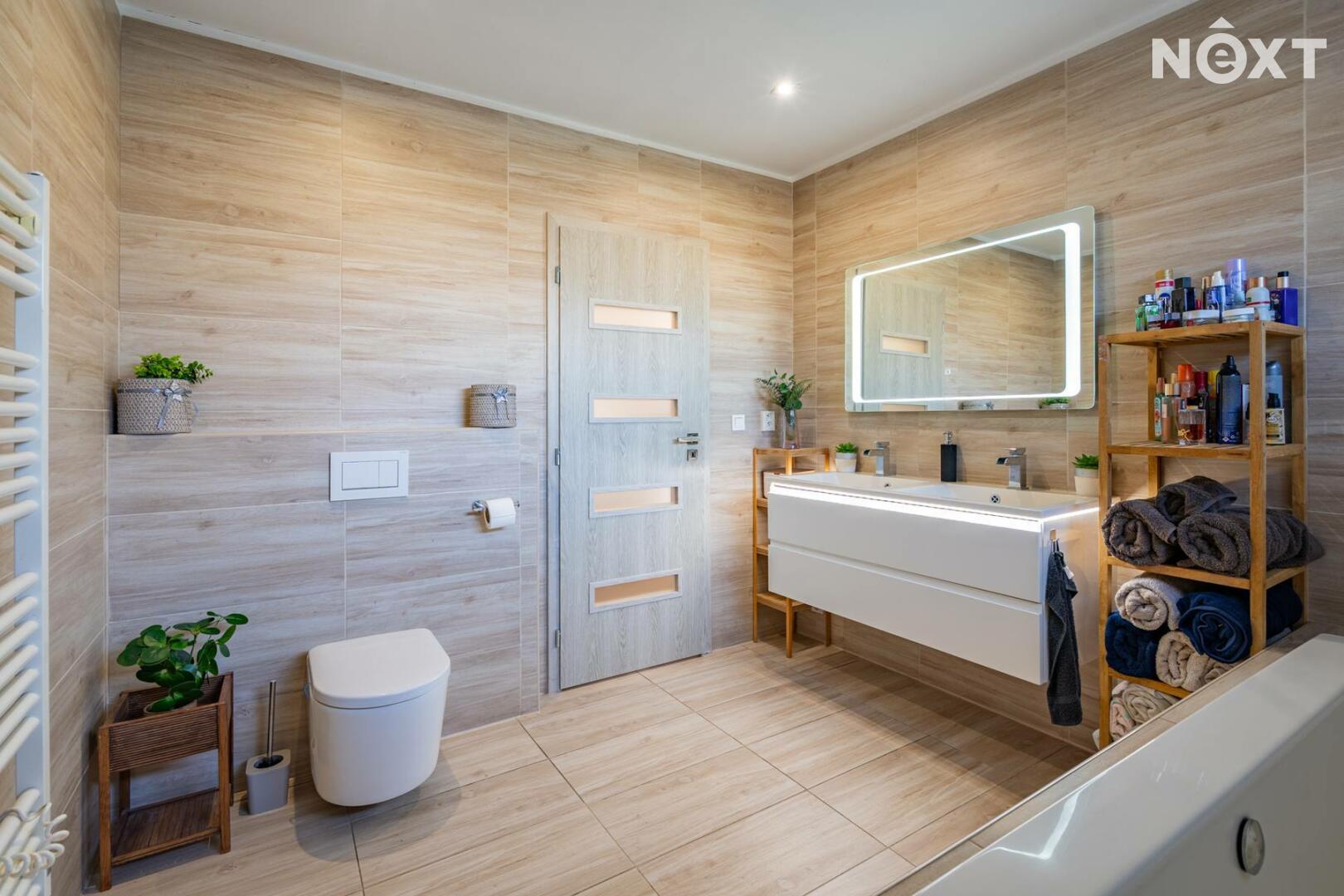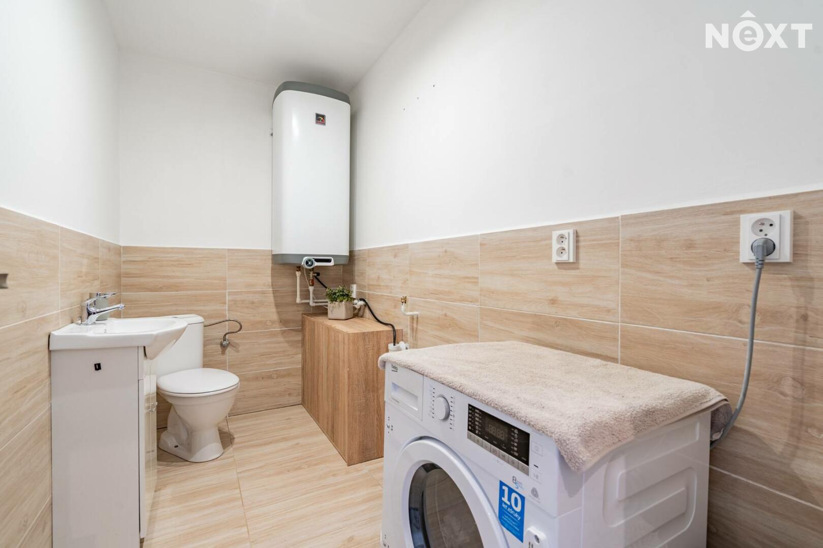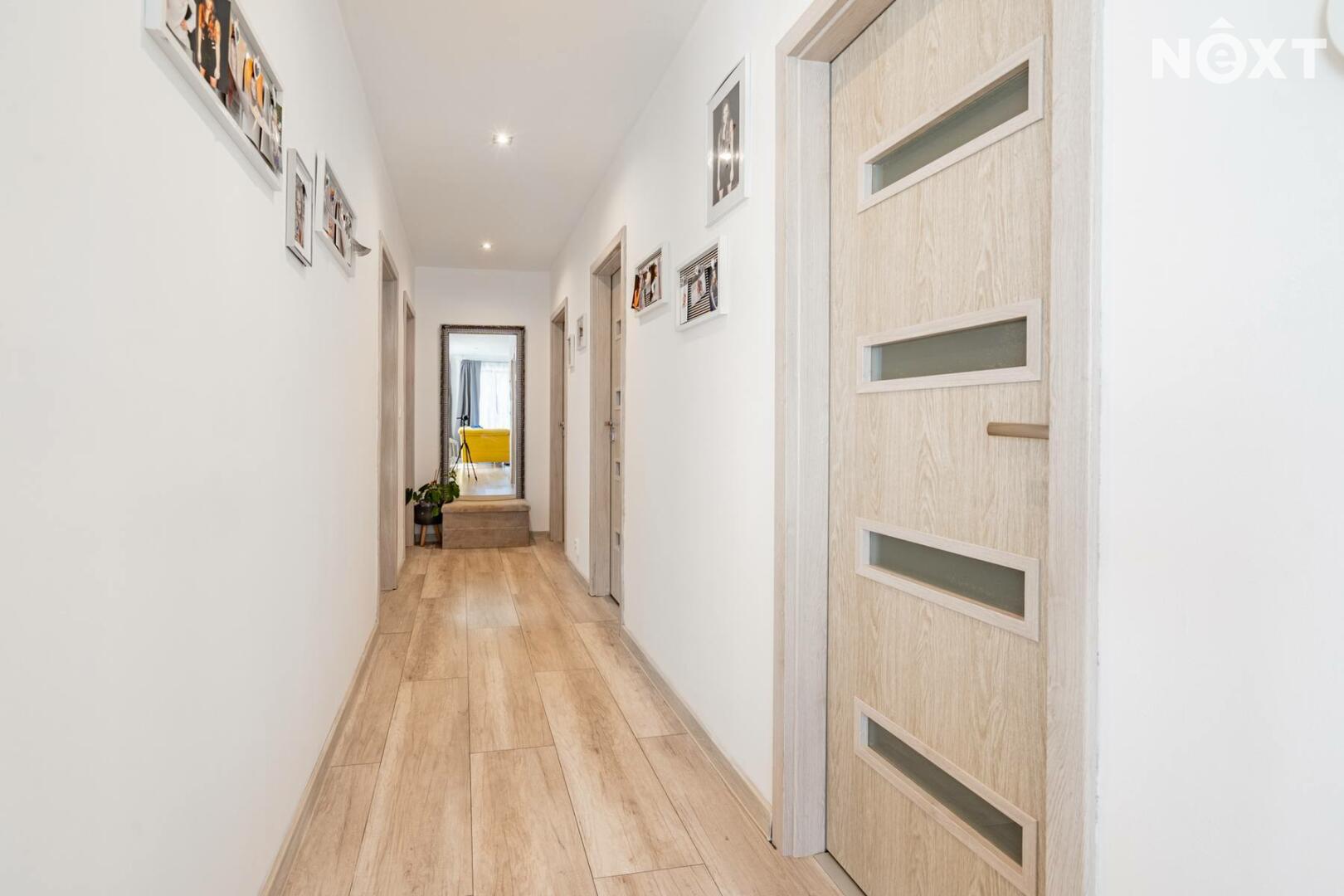 Dlouhá chodba na opačné straně domu zajišťuje samostatné vstupy do technické místnosti s místem pro pračku a sušičku, samostatného WC, tří dalších ložnic a prostorné koupelny s velkou vanou a druhým WC. Jeden z pokojů je aktuálně využíván jako kosmetické studio a má samostatný vchod, což otevírá možnost pro podnikání přímo z domu.