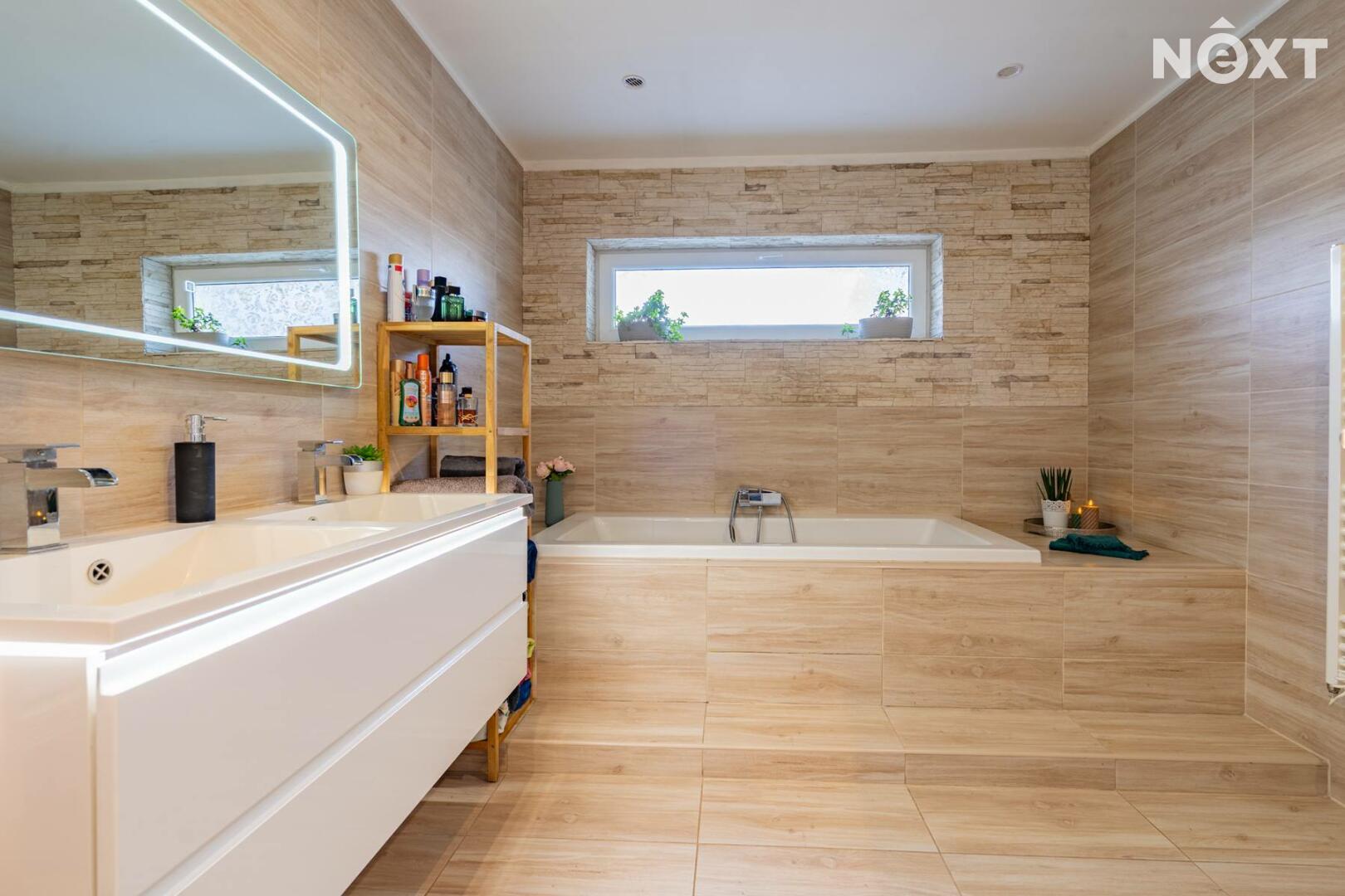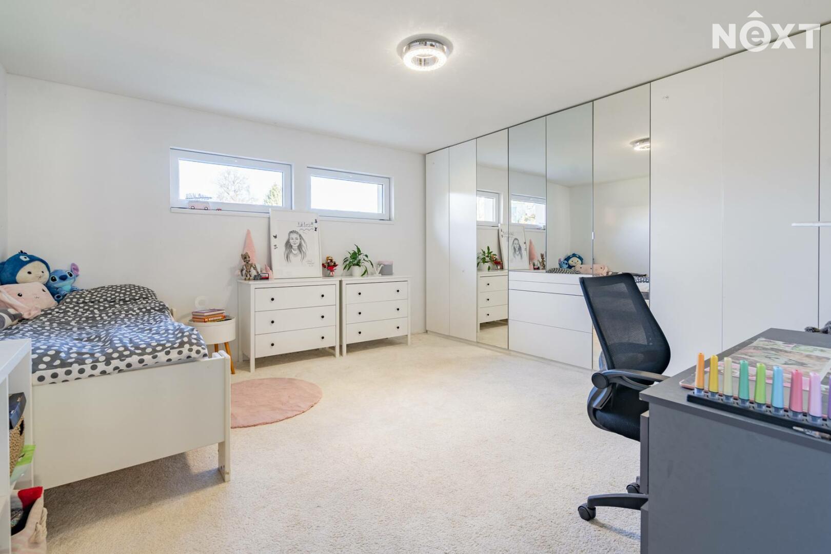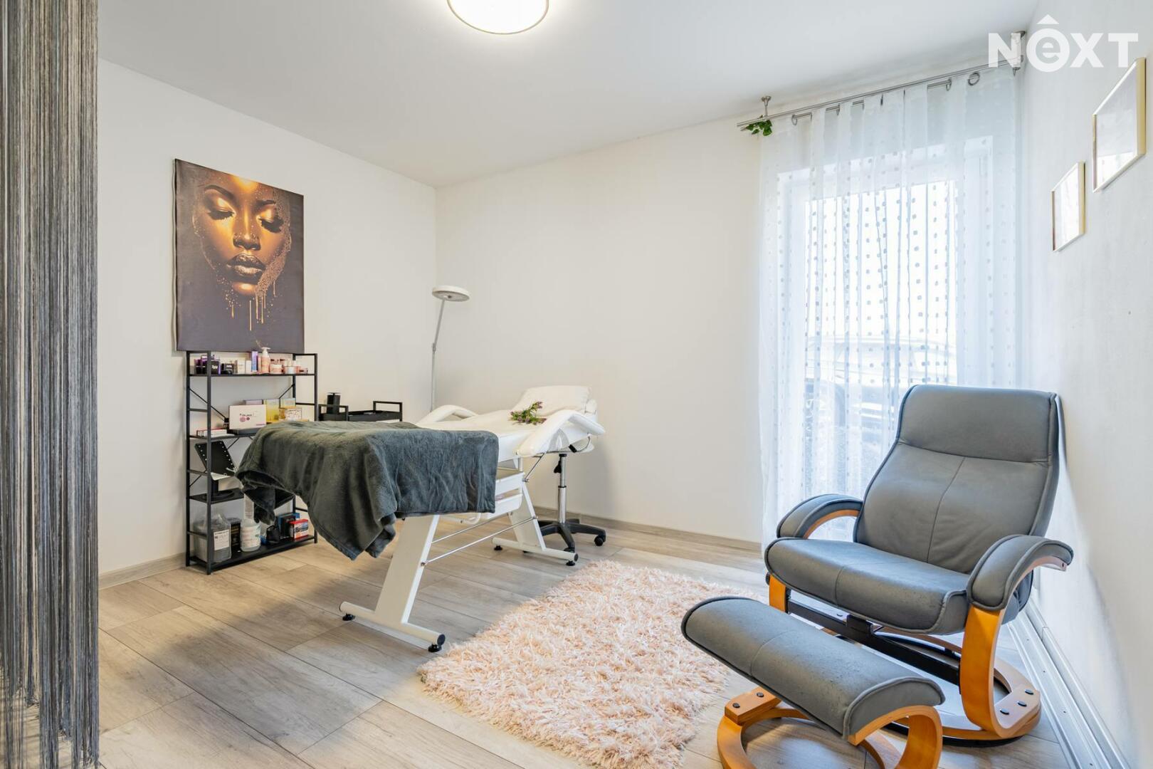 Dlouhá chodba na opačné straně domu zajišťuje samostatné vstupy do technické místnosti s místem pro pračku a sušičku, samostatného WC, tří dalších ložnic a prostorné koupelny s velkou vanou a druhým WC. Jeden z pokojů je aktuálně využíván jako kosmetické studio a má samostatný vchod, což otevírá možnost pro podnikání přímo z domu.