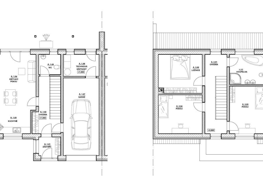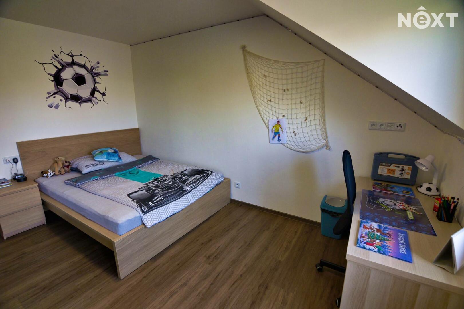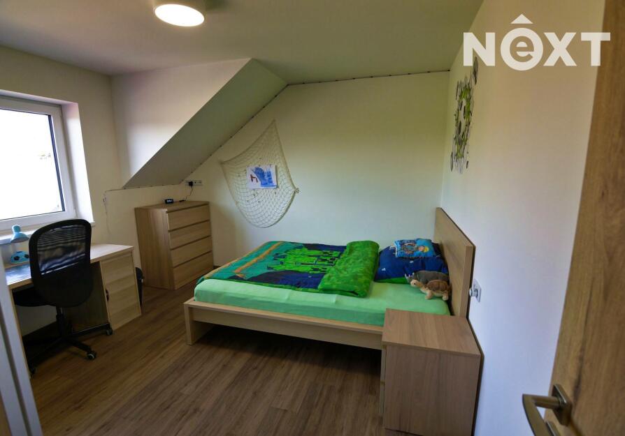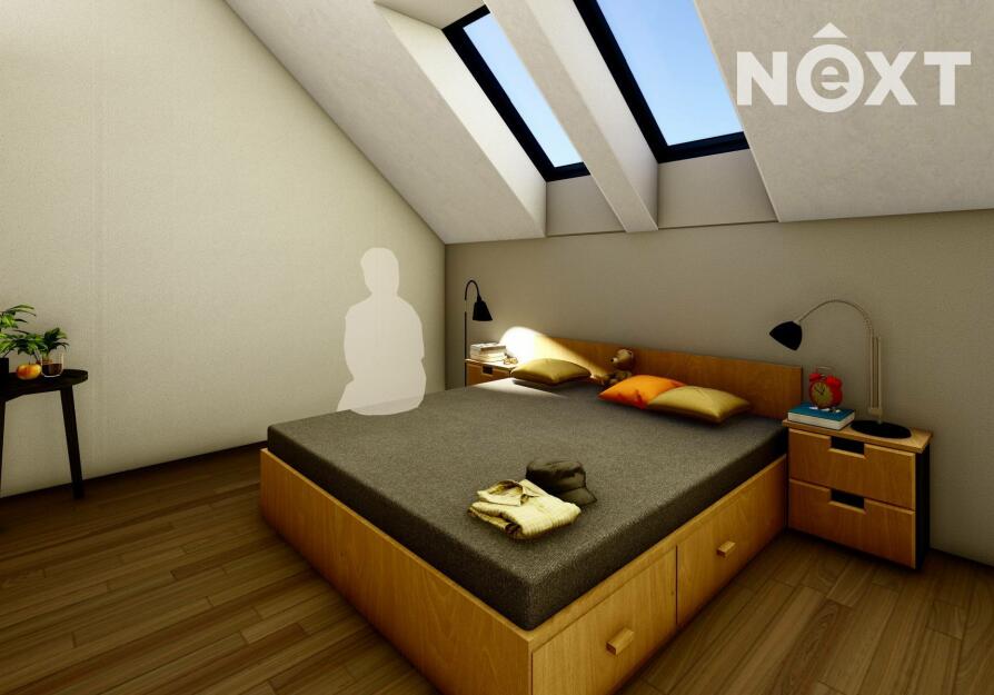 2. NP: Najdete zde tři prostorné ložnice a velkou koupelnu s WC, vanou, sprchou a dvojitým umyvadlem. Z chodby i jedné ložnice je vstup na venkovní balkon s výhledem do klidné části obce.