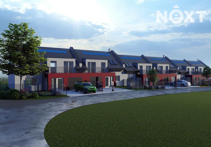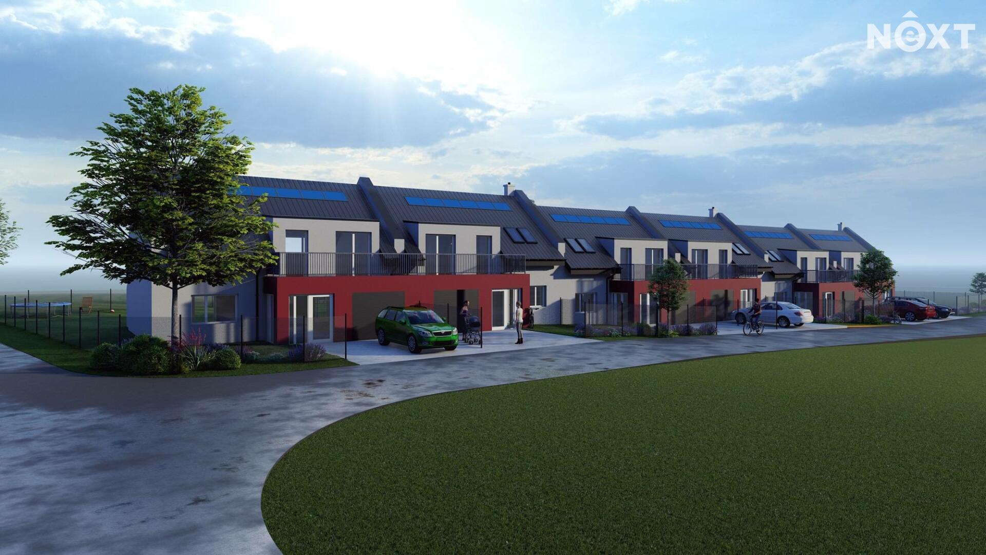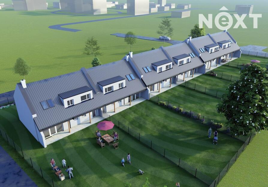 Rodinný řadový dům B o celkové ploše místností cca 138,58m2 a zastavěné ploše cca 97,6m2. Celková plocha zahrady cca 2177,4 m2.