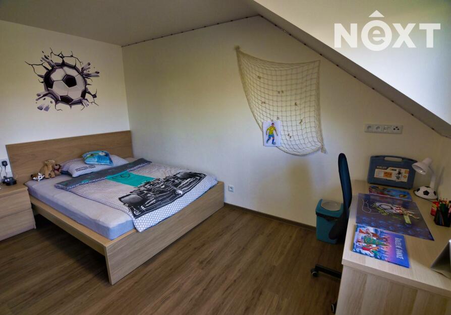 2. NP: Najdete zde tři prostorné ložnice a velkou koupelnu s WC, vanou, sprchou a dvojitým umyvadlem. Z chodby i jedné ložnice je vstup na venkovní balkon s výhledem do klidné části obce.