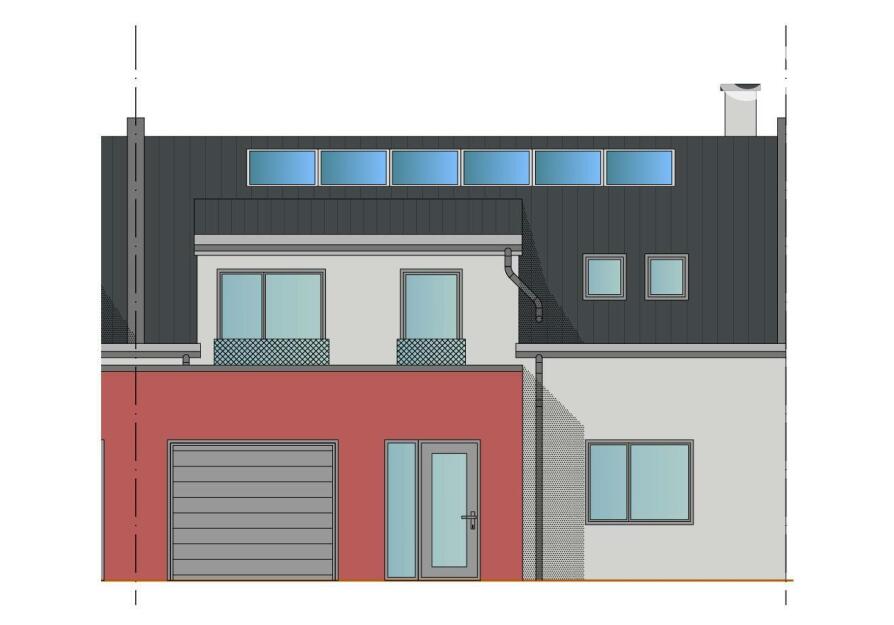 Rodinný řadový dům E o celkové ploše místností cca 138,58m2 a zastavěné ploše cca 97,6m2. Celková plocha zahrady cca 232,6m2.