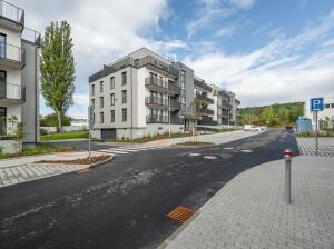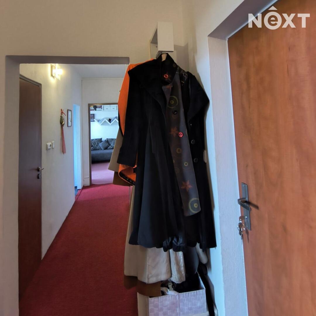 Dispozice bytu je velmi praktická. Prostorná vstupní chodba je vybavena vestavěnými skříněmi a nabízí přístup do úložné komory. Hned naproti vchodu se nachází první samostatný pokoj, další pokoj je přístupný z chodby. Dominantou bytu je světlý a prostorný obývací pokoj, který poskytuje dostatek místa pro rodinné setkávání i odpočinek. Součástí bytu je také kuchyně vybavená kuchyňskou linkou. Okna z obývacího pokoje, kuchyně a pokoje jsou orientována na západní světovou stranu. Zbývající pokoj má okno orientované na sever. Koupelna je vybavena rohovou vanou a koupelnovým nábytkem, přičemž toaleta je umístěna samostatně.