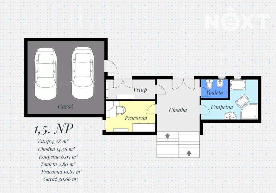 Součástí nemovitosti je dvojgaráž o velikosti 30,66 m², která poskytuje komfortní parkování pro dvě vozidla i prostor pro uskladnění věcí. K dispozici je také zastřešená terasa, která nabízí možnost příjemného venkovního posezení.