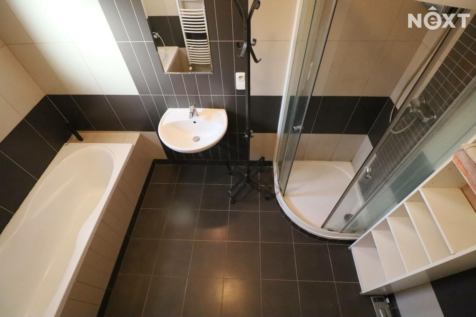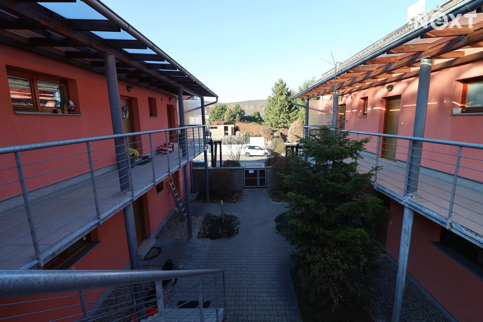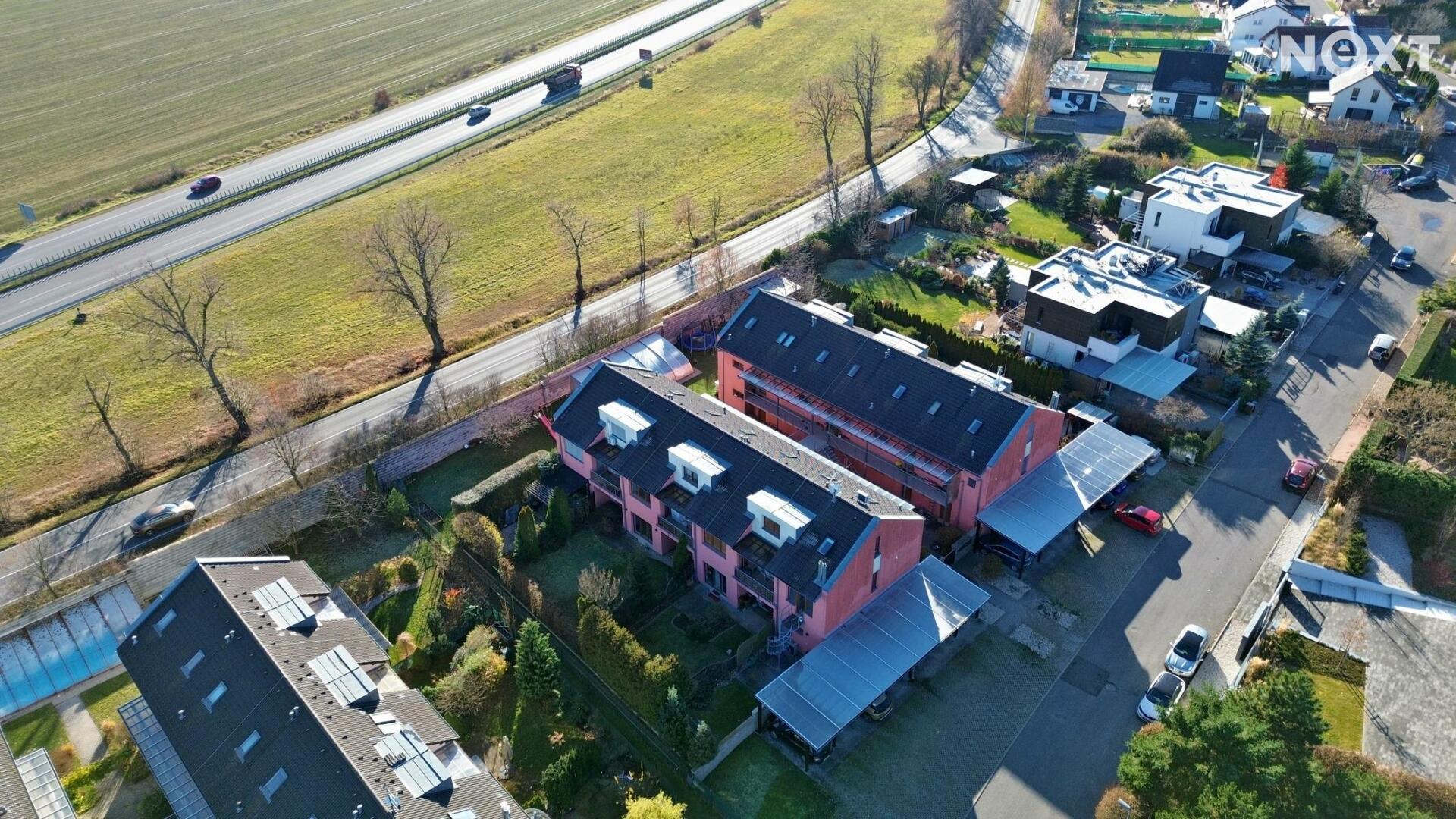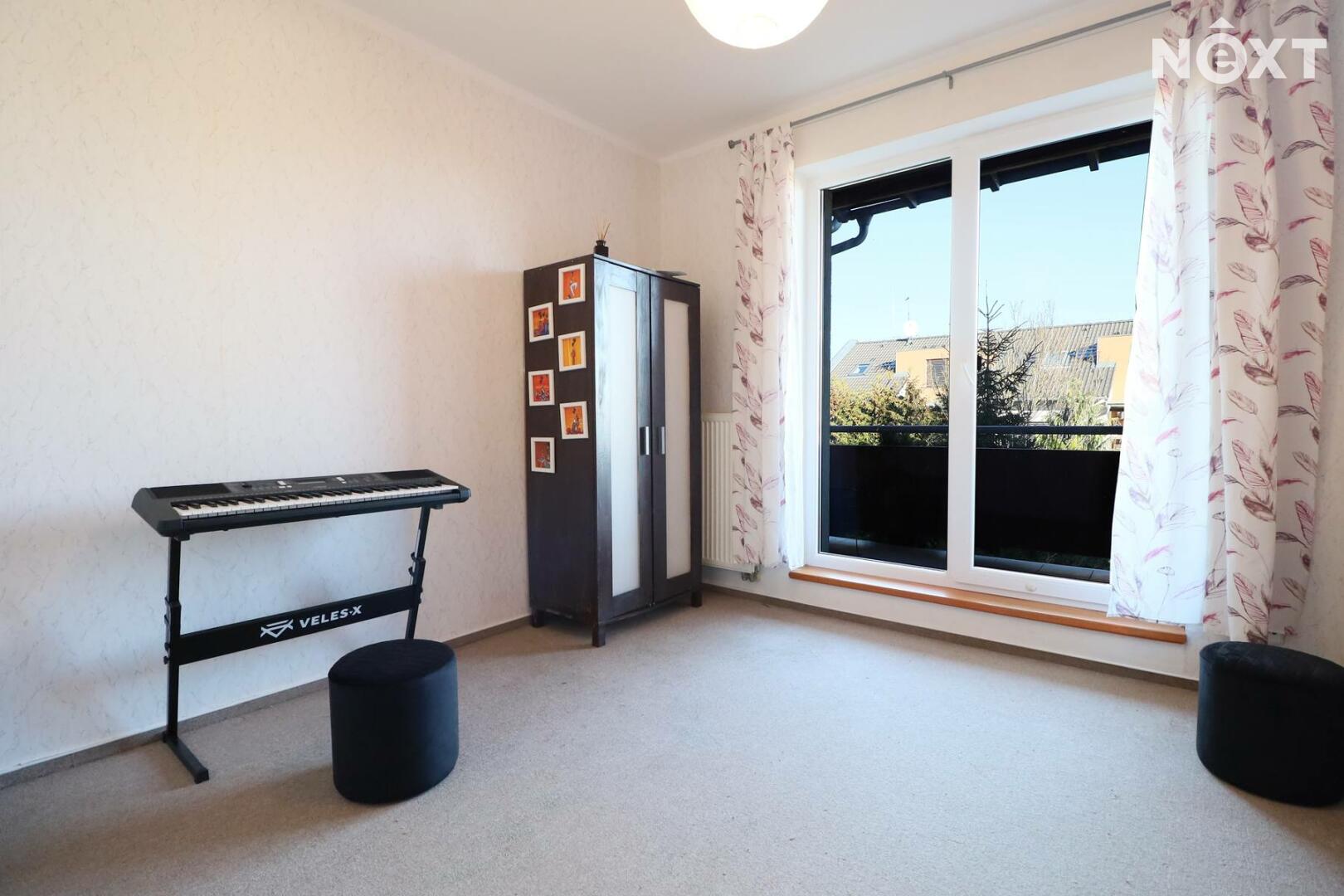 Byt je součástí dvou domků, které vytvářejí útulný dvorek. Cestička lemovaná okrasnými keři vás zavede k blankytnému bazénu. Vedle něj najdete houpačky, klouzačku, pískoviště, trampolínu i pergolu se zahradním posezením, grilem a lednicí – ideální místo pro sousedská setkání. Vytápění bytu díky společnému plynovému kotli pro daný objekt.
