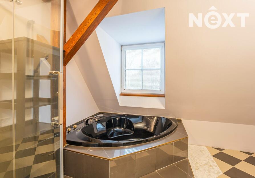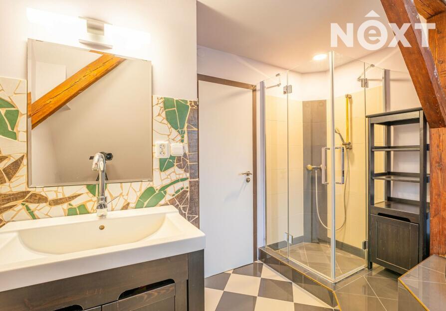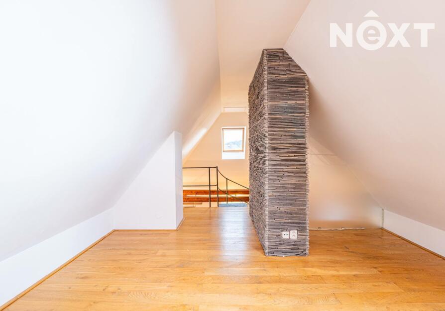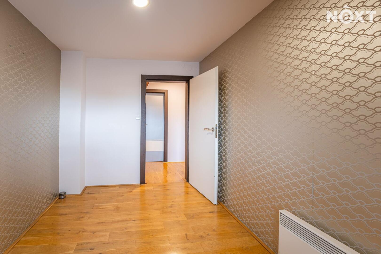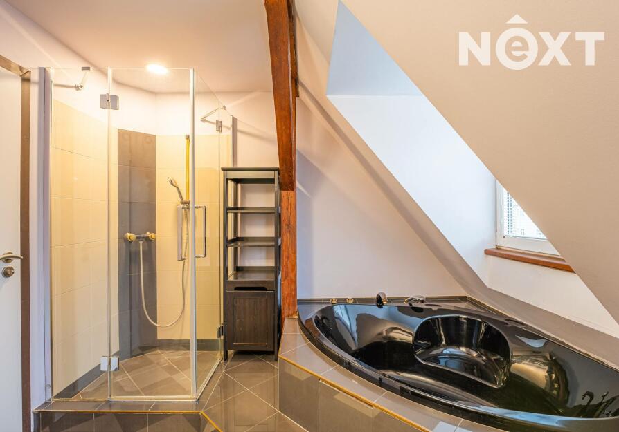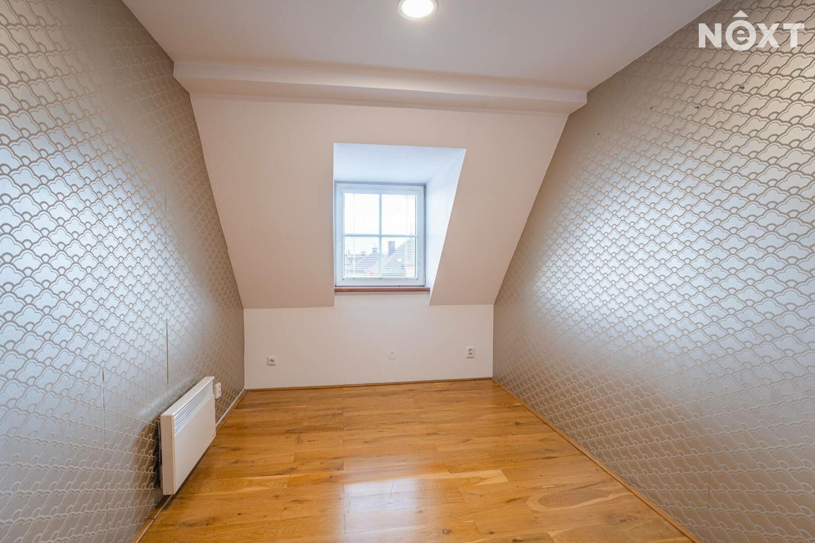 Byt s podlahovou plochou 83 m2 se nachází v 3.NP (nejvyšším patře) cihlového domu v klidné lokalitě blízko centra města. Chodba, v níž se nachází vestavěná skříň se zrcadlem, je průchozí do všech místností. V koupelně najdete sprchový kout i vanu, umyvadlovou skříňku se zrcadlem a prostor na pračku. WC je zvlášť. Část obývacího pokoje tvoří na míru vyrobená kuchyňská linka s vestavěnými spotřebiči jako je varná deska, elektrická trouba a myčka. Z něj vystoupáte do patýrka nebo vyjdete na balkon.